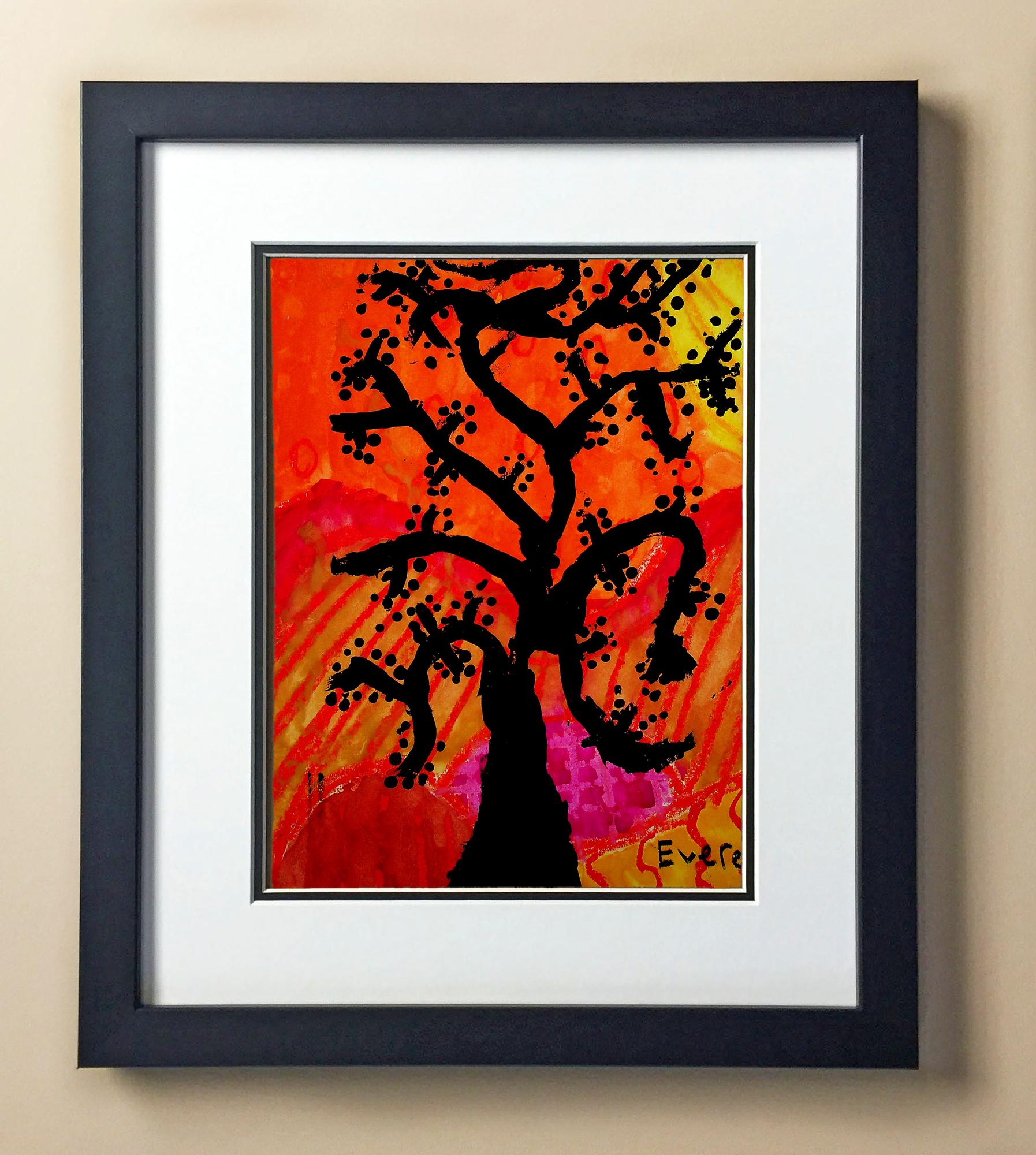 Included with the purchase is the Students Artwork, Frame, double matboard, shatter proof plexiglass, and a ready to hang backerboard with turnbuttons