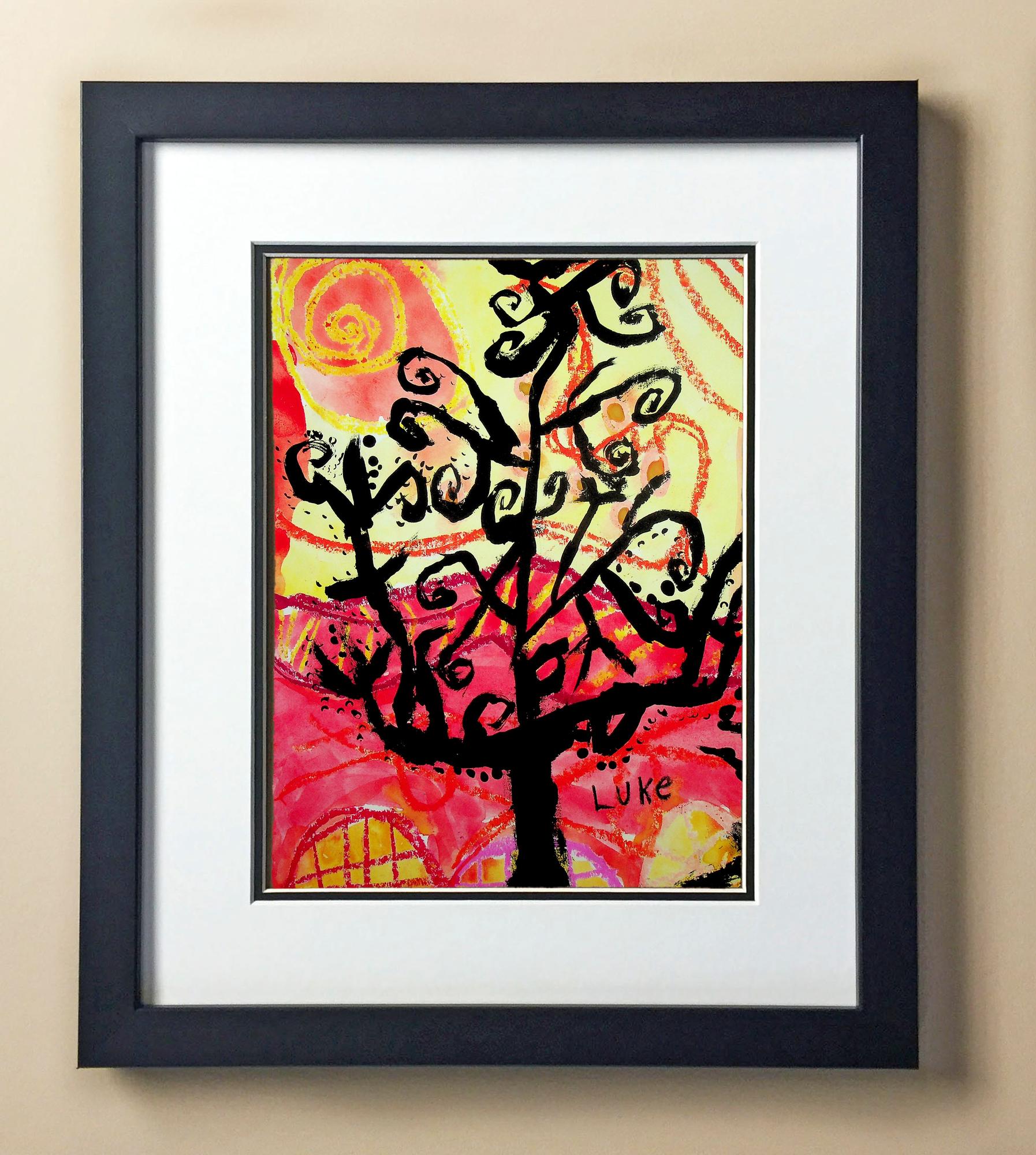 Included with the purchase is the Students Artwork, Frame, double matboard, shatter proof plexiglass, and a ready to hang backerboard with turnbuttons