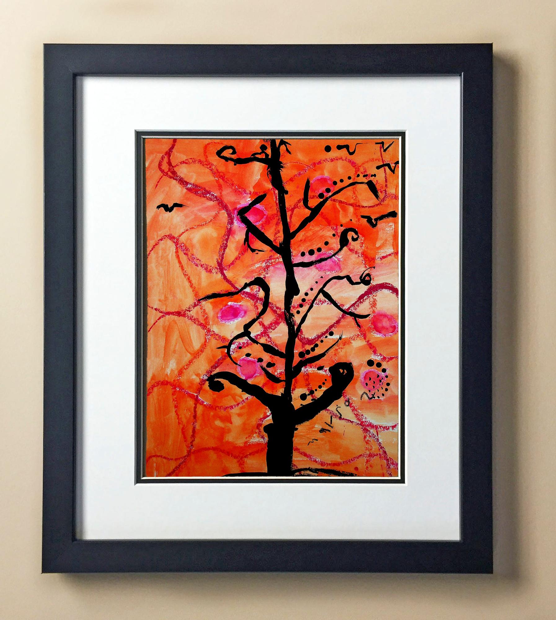 Included with the purchase is the Students Artwork, Frame, double matboard, shatter proof plexiglass, and a ready to hang backerboard with turnbuttons