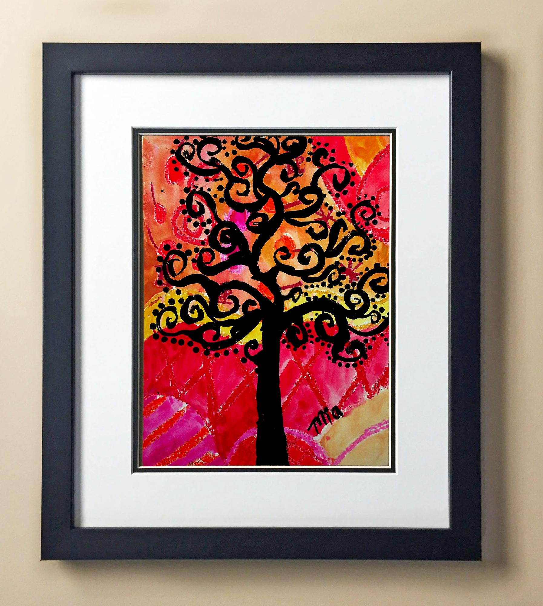 Included with the purchase is the Students Artwork, Frame, double matboard, shatter proof plexiglass, and a ready to hang backerboard with turnbuttons