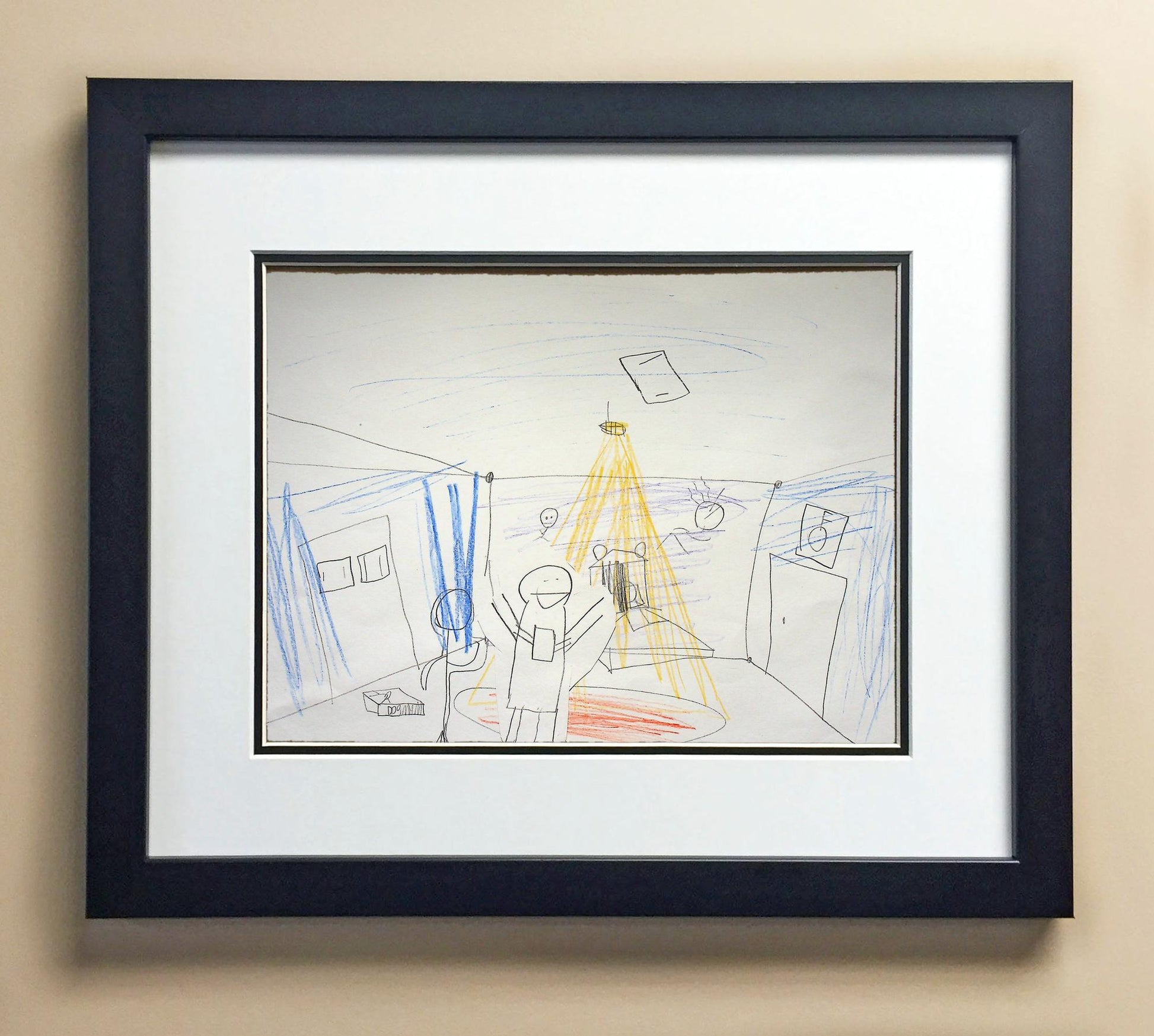 Included with the purchase is the Students Artwork, Frame, double matboard, shatter proof plexiglass, and a ready to hang backerboard with turnbuttons