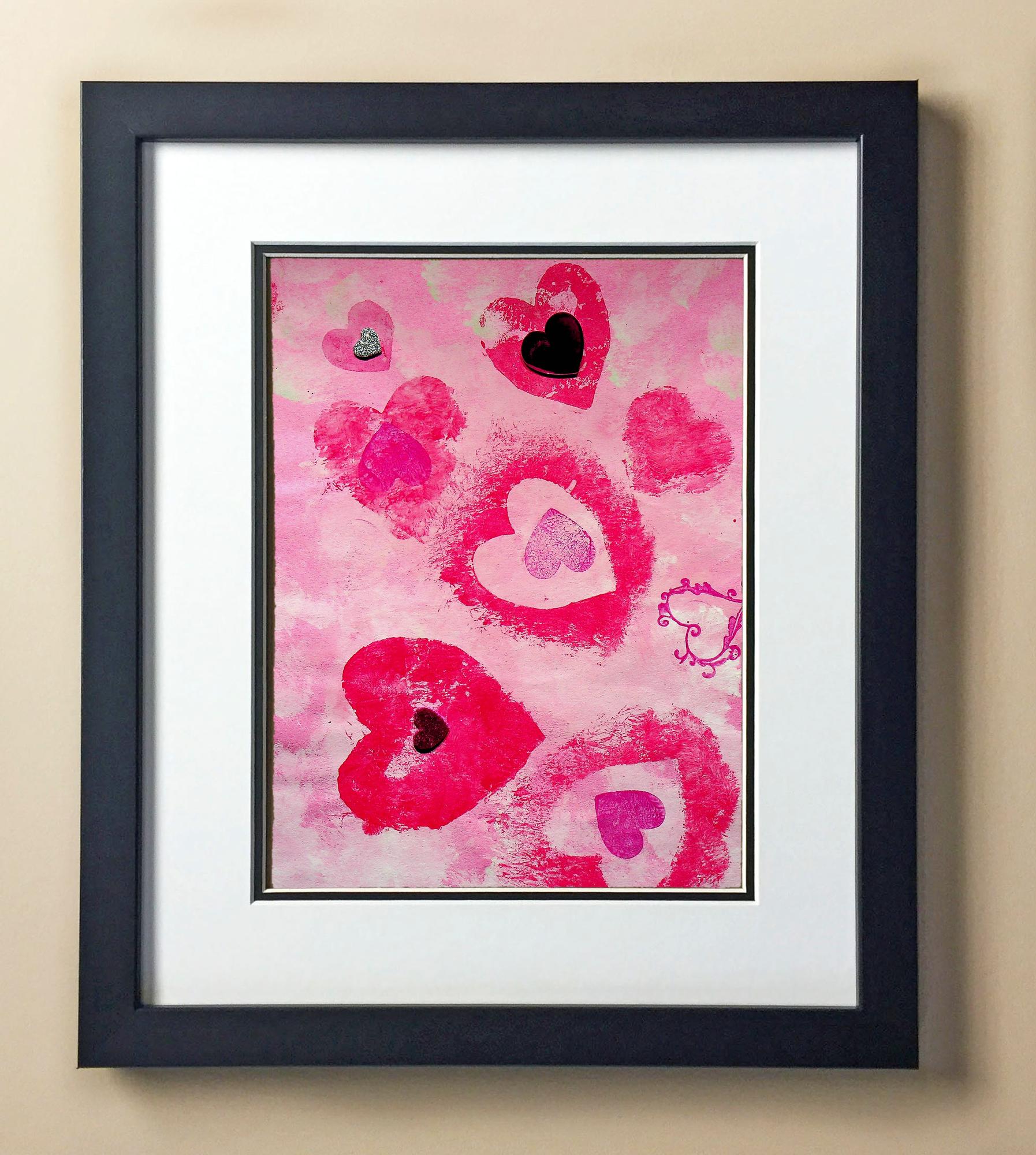 Included with the purchase is the Students Artwork, Frame, double matboard, shatter proof plexiglass, and a ready to hang backerboard with turnbuttons