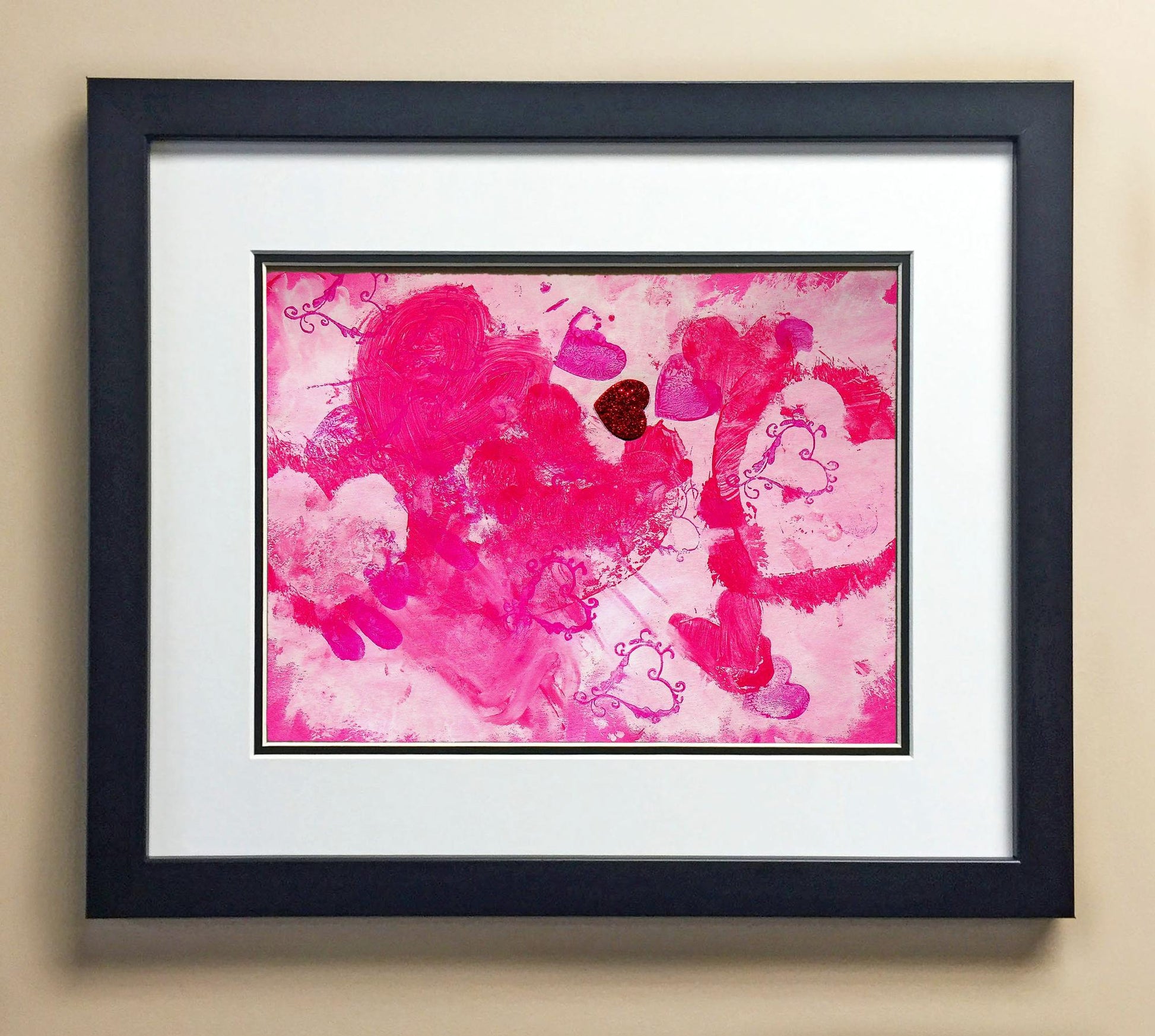 Included with the purchase is the Students Artwork, Frame, double matboard, shatter proof plexiglass, and a ready to hang backerboard with turnbuttons