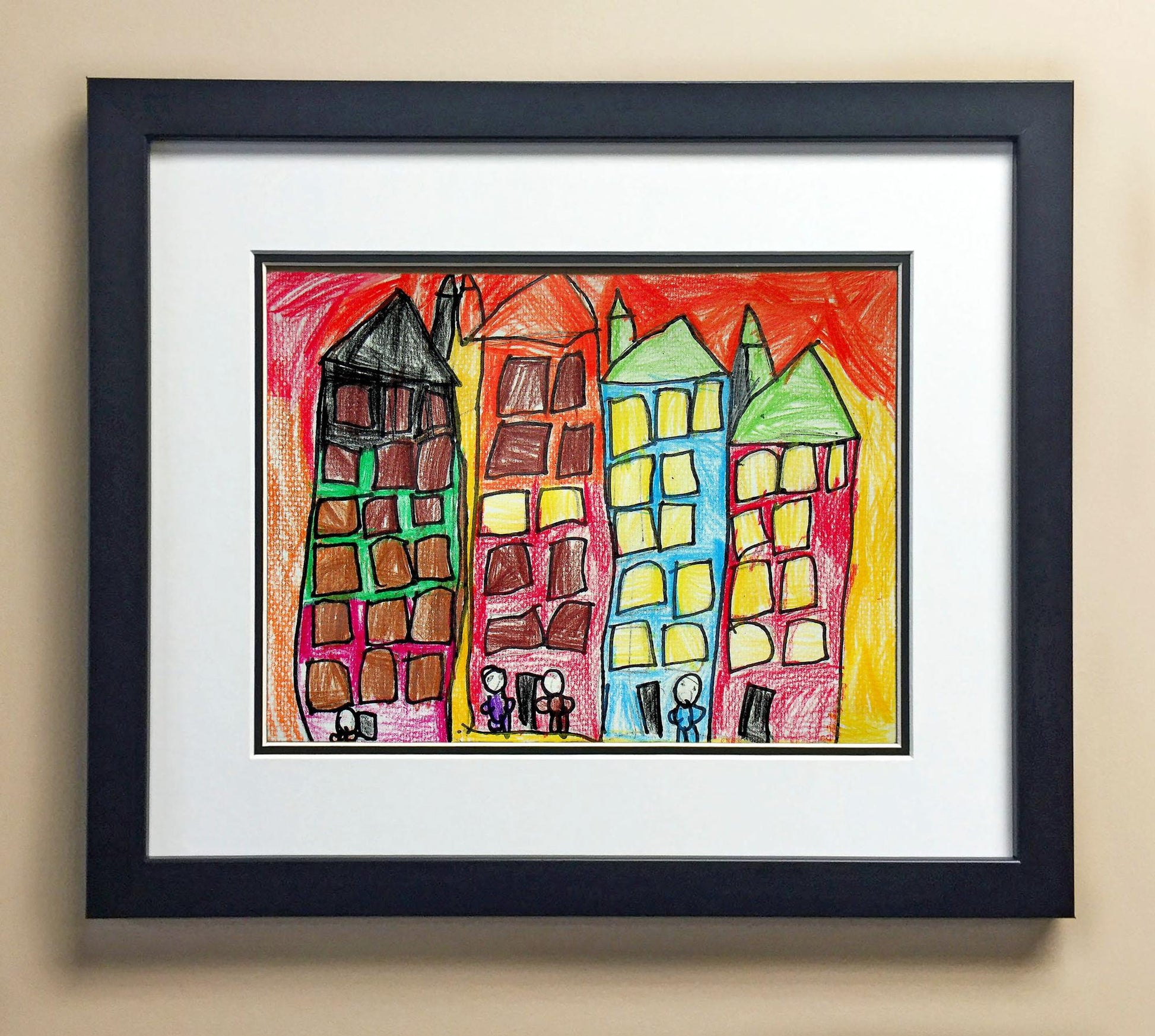 Included with the purchase is the Students Artwork, Frame, double matboard, shatter proof plexiglass, and a ready to hang backerboard with turnbuttons