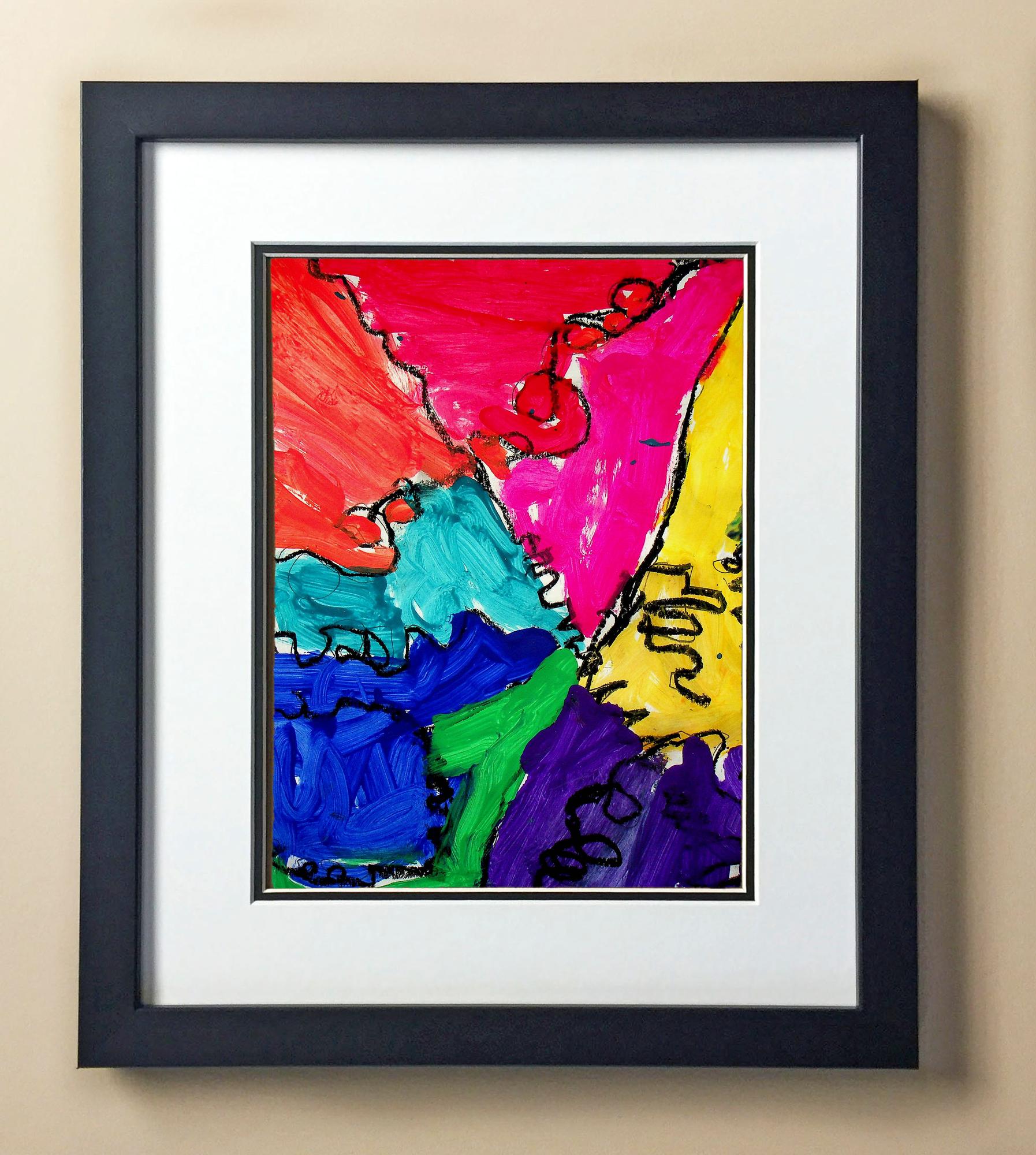 Included with the purchase is the Students Artwork, Frame, double matboard, shatter proof plexiglass, and a ready to hang backerboard with turnbuttons