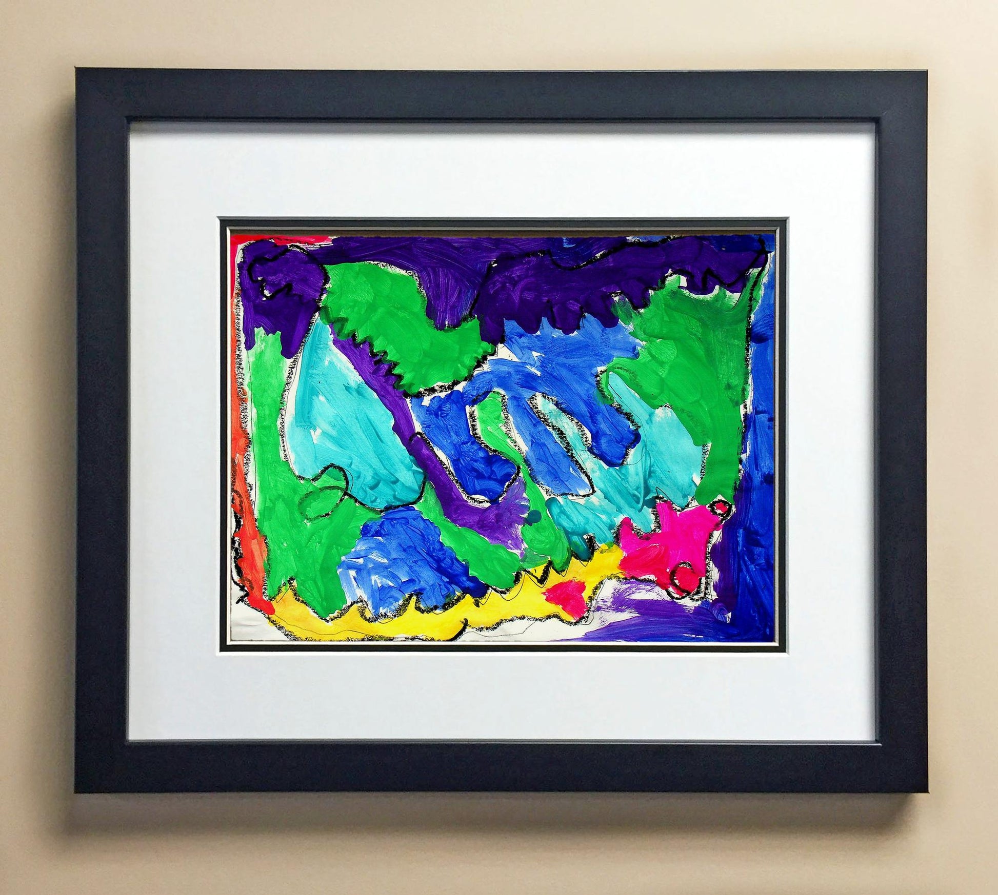 Included with the purchase is the Students Artwork, Frame, double matboard, shatter proof plexiglass, and a ready to hang backerboard with turnbuttons