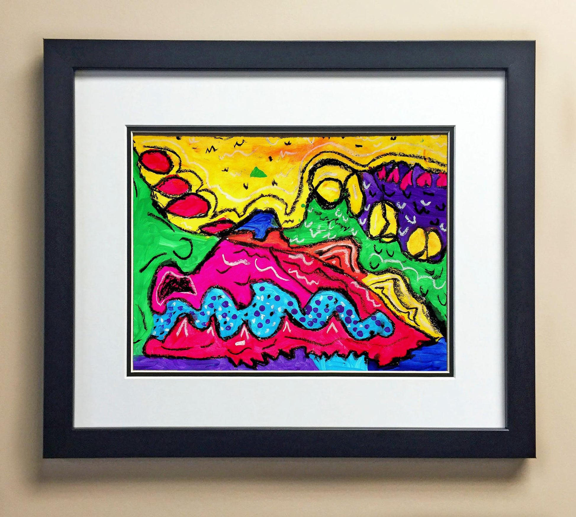Included with the purchase is the Students Artwork, Frame, double matboard, shatter proof plexiglass, and a ready to hang backerboard with turnbuttons