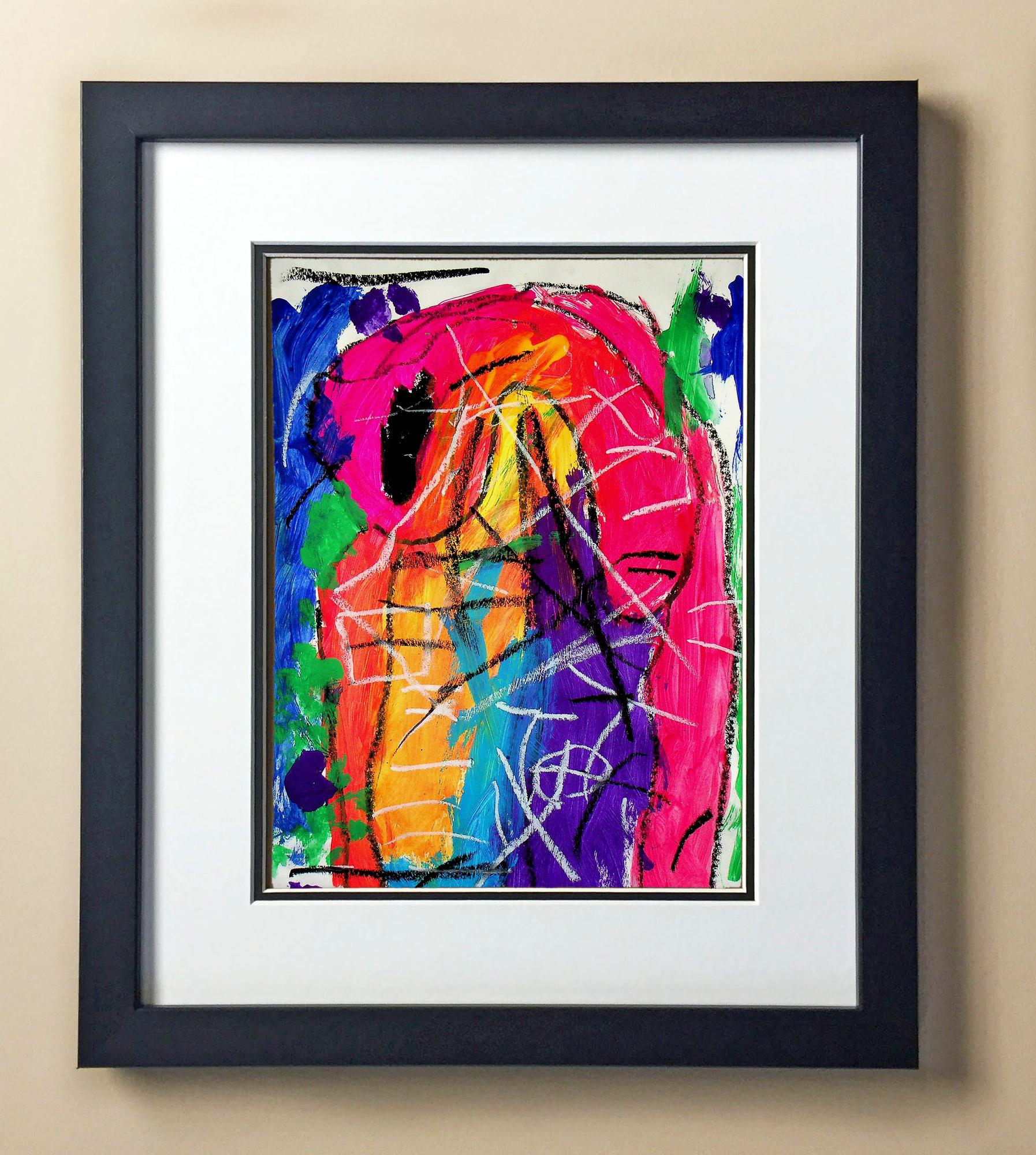 Included with the purchase is the Students Artwork, Frame, double matboard, shatter proof plexiglass, and a ready to hang backerboard with turnbuttons