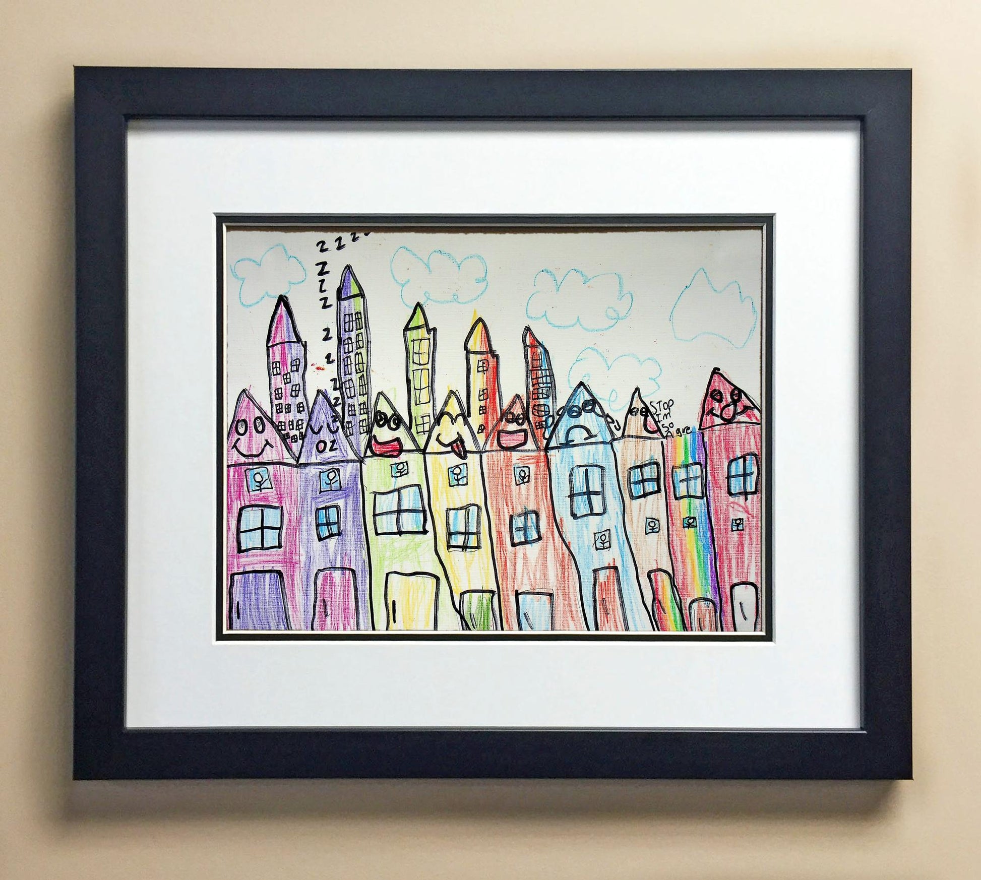 Included with the purchase is the Students Artwork, Frame, double matboard, shatter proof plexiglass, and a ready to hang backerboard with turnbuttons