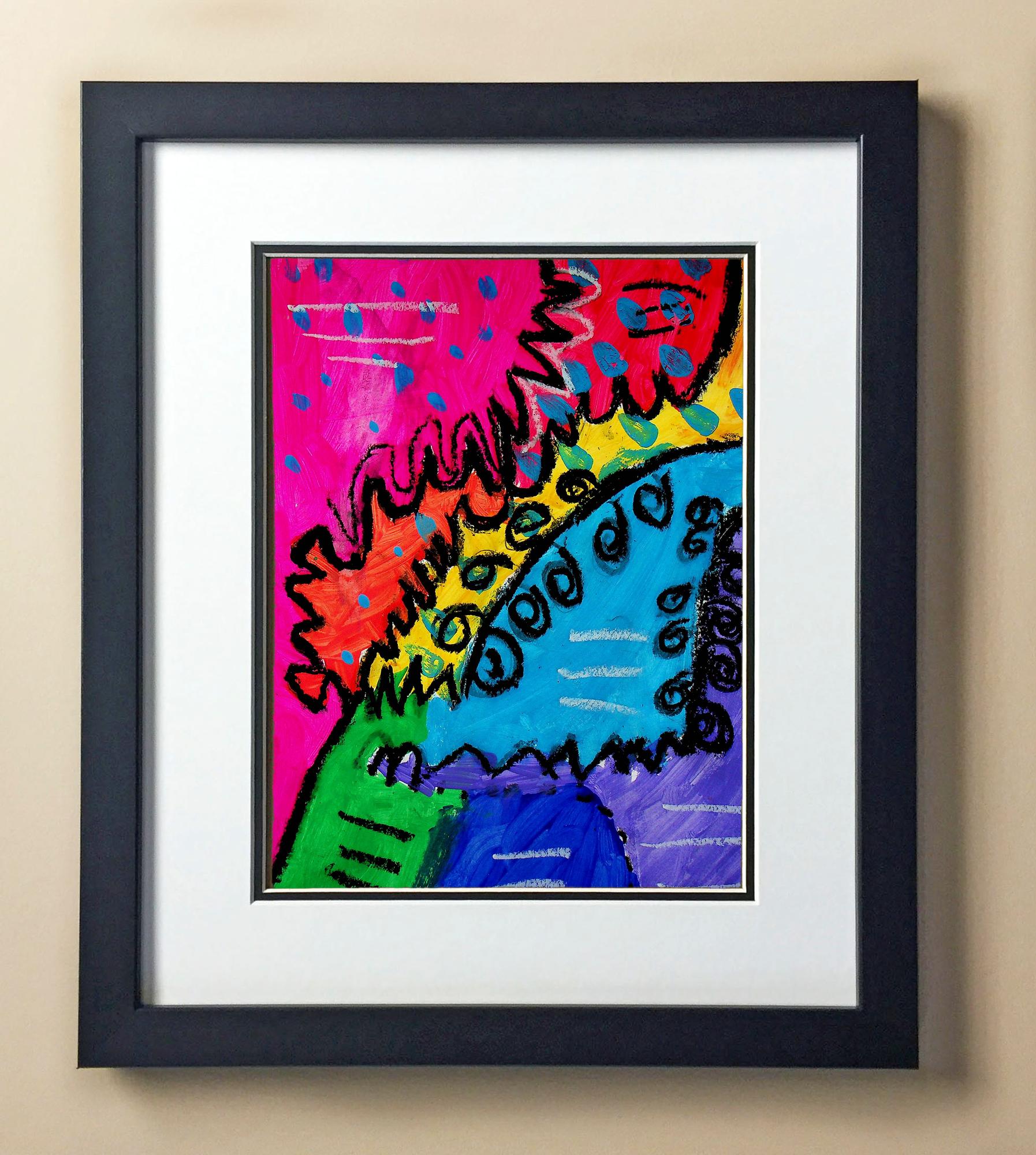 Included with the purchase is the Students Artwork, Frame, double matboard, shatter proof plexiglass, and a ready to hang backerboard with turnbuttons