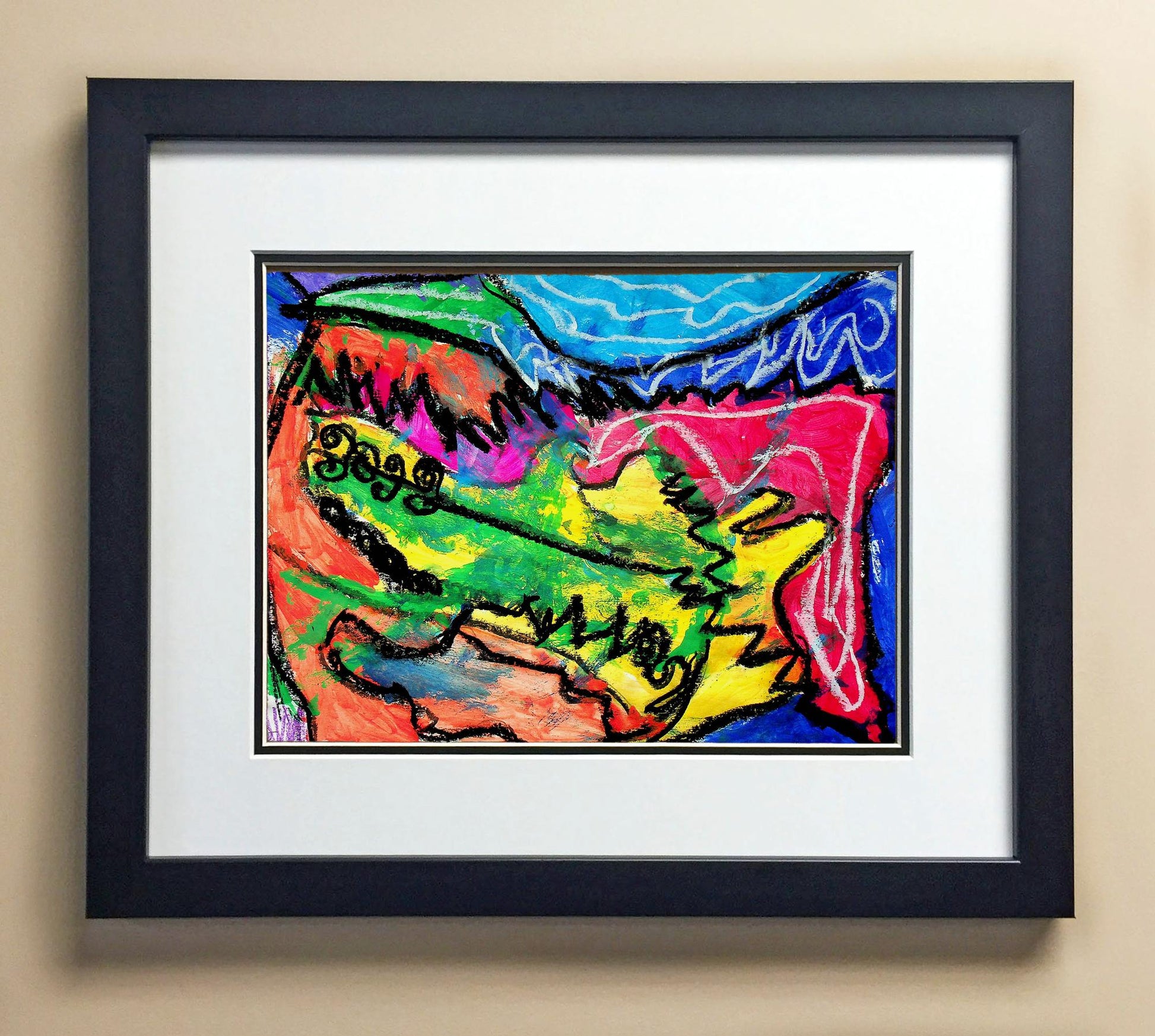 Included with the purchase is the Students Artwork, Frame, double matboard, shatter proof plexiglass, and a ready to hang backerboard with turnbuttons