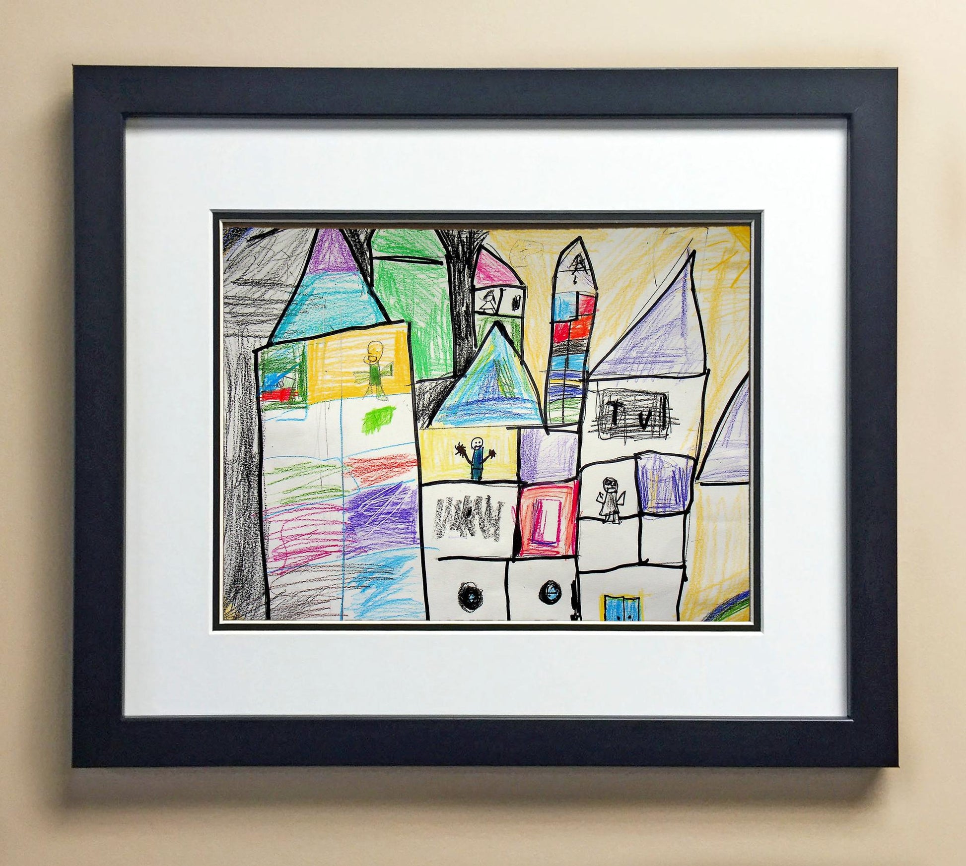 Included with the purchase is the Students Artwork, Frame, double matboard, shatter proof plexiglass, and a ready to hang backerboard with turnbuttons