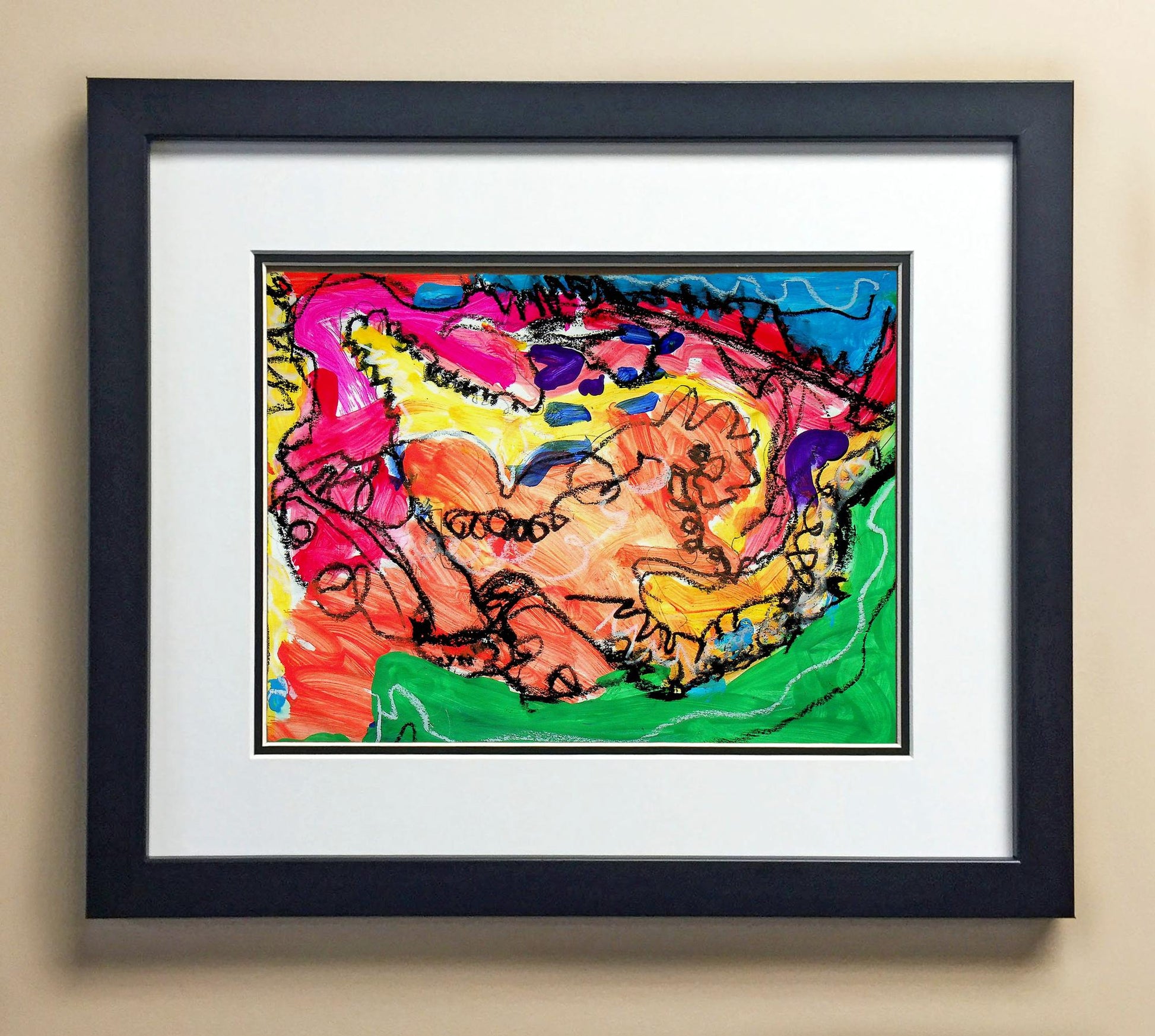 Included with the purchase is the Students Artwork, Frame, double matboard, shatter proof plexiglass, and a ready to hang backerboard with turnbuttons