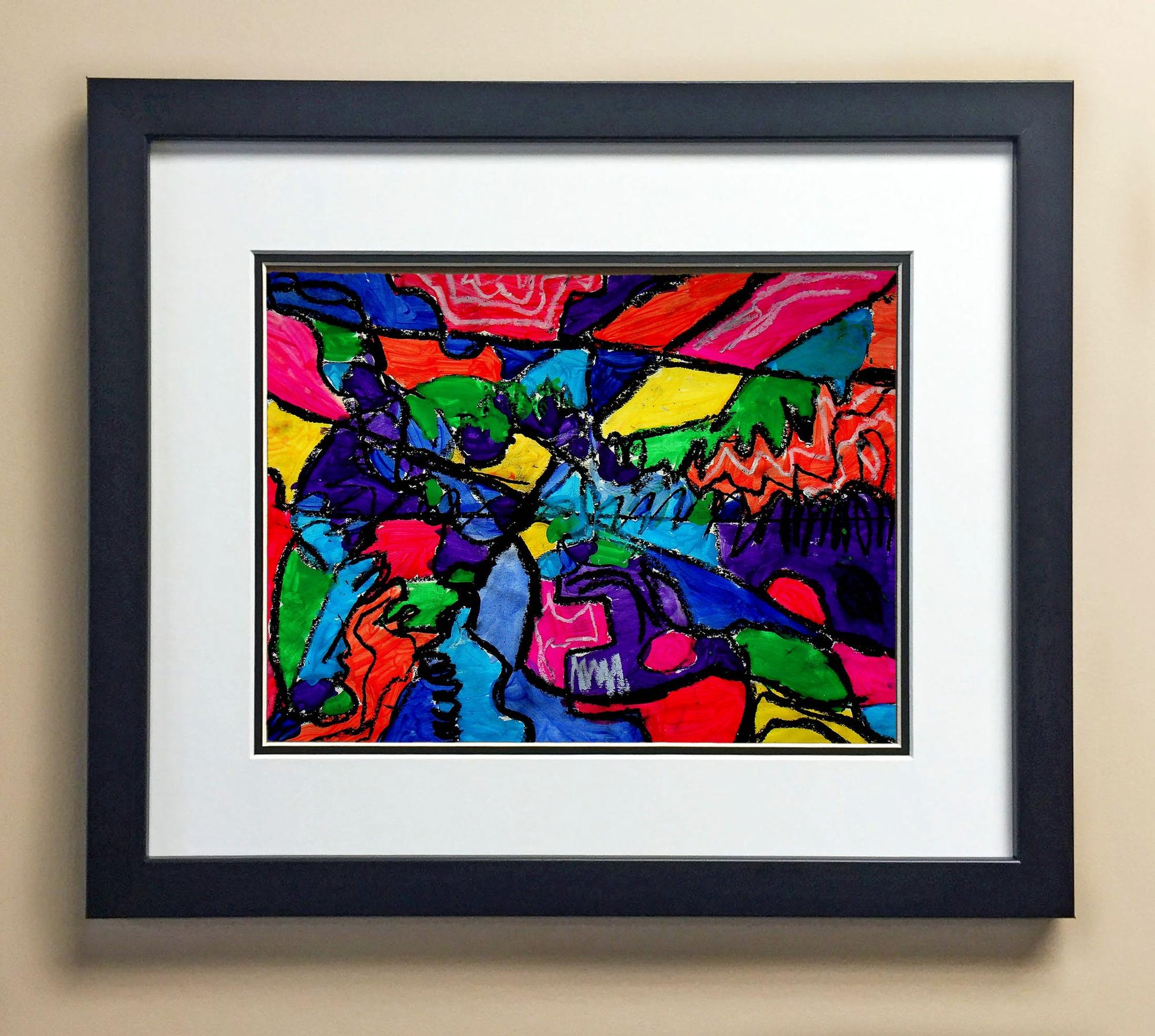 Included with the purchase is the Students Artwork, Frame, double matboard, shatter proof plexiglass, and a ready to hang backerboard with turnbuttons