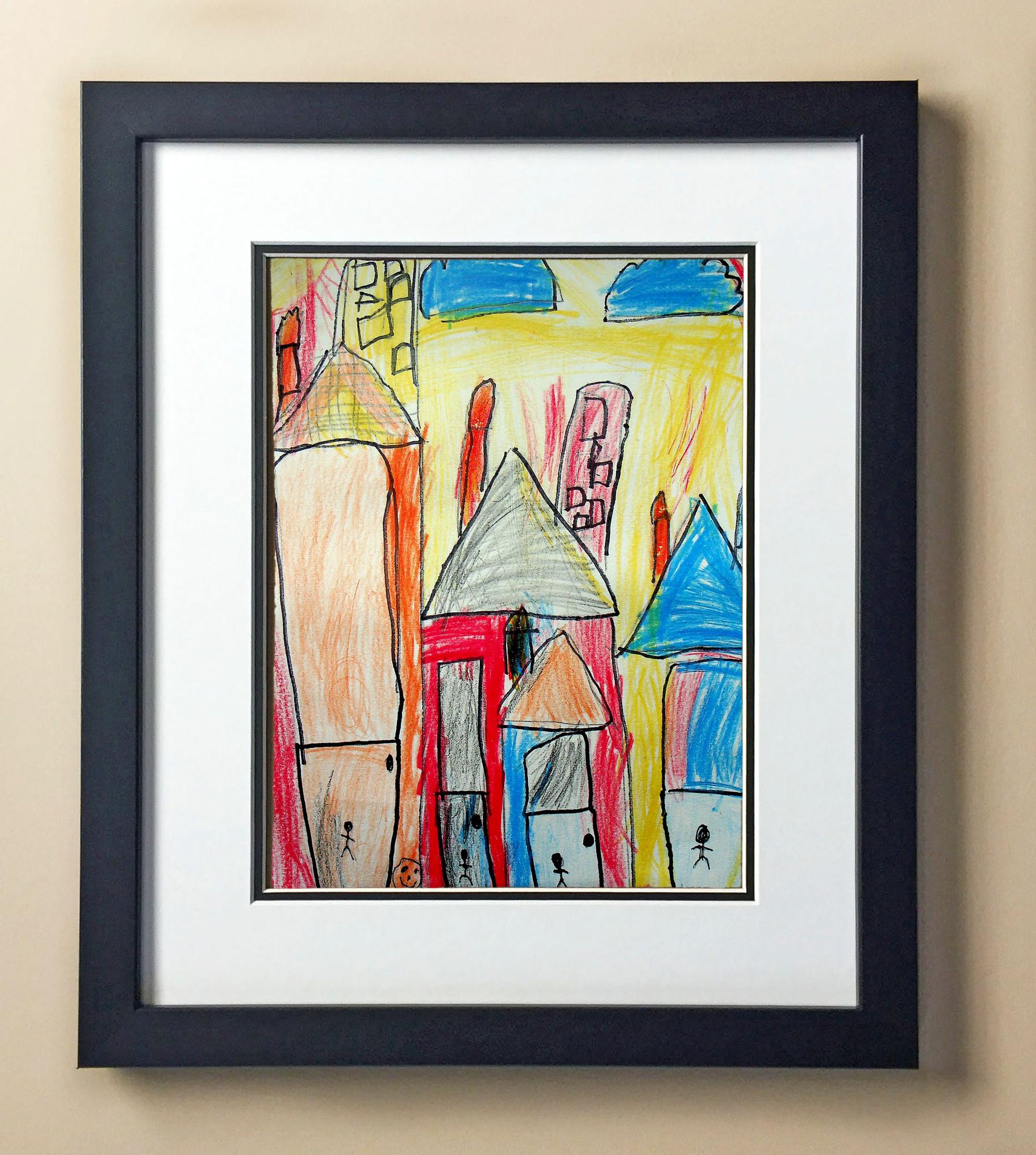 Included with the purchase is the Students Artwork, Frame, double matboard, shatter proof plexiglass, and a ready to hang backerboard with turnbuttons