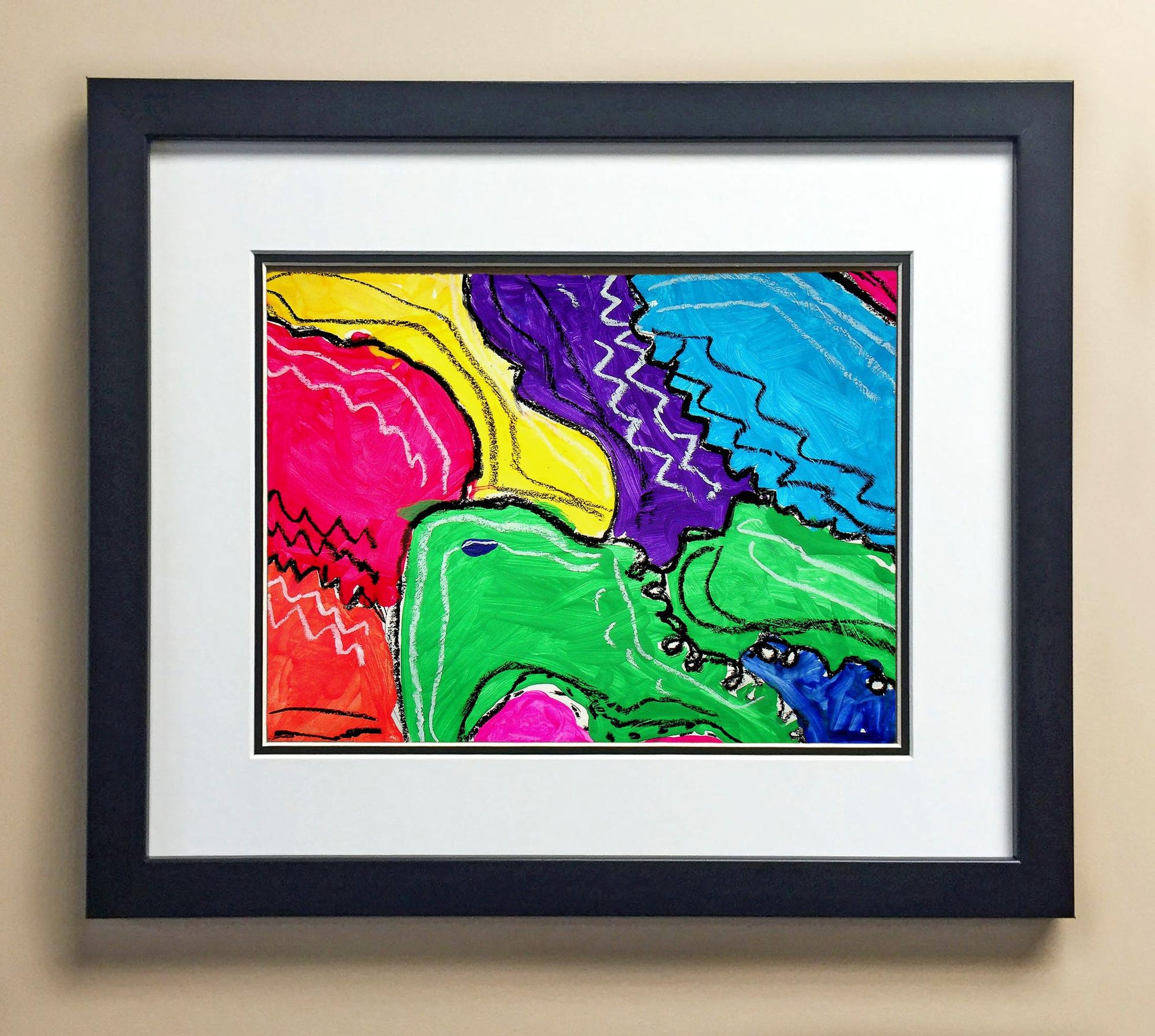 Included with the purchase is the Students Artwork, Frame, double matboard, shatter proof plexiglass, and a ready to hang backerboard with turnbuttons