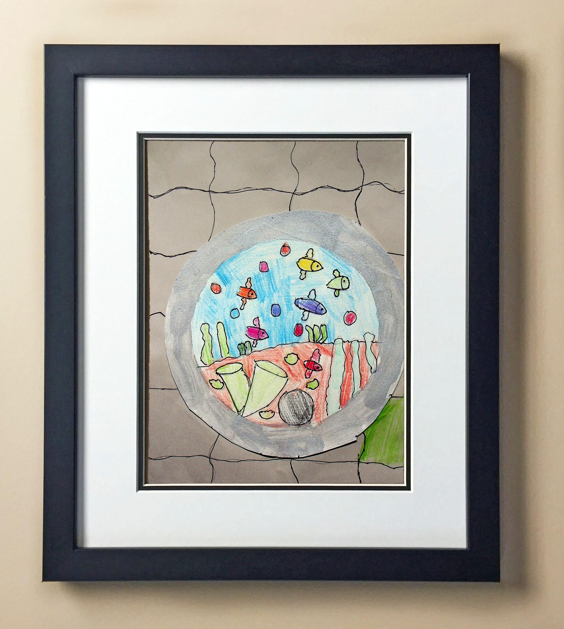 Included with the purchase is the Students Artwork, Frame, double matboard, shatter proof plexiglass, and a ready to hang backerboard with turnbuttons