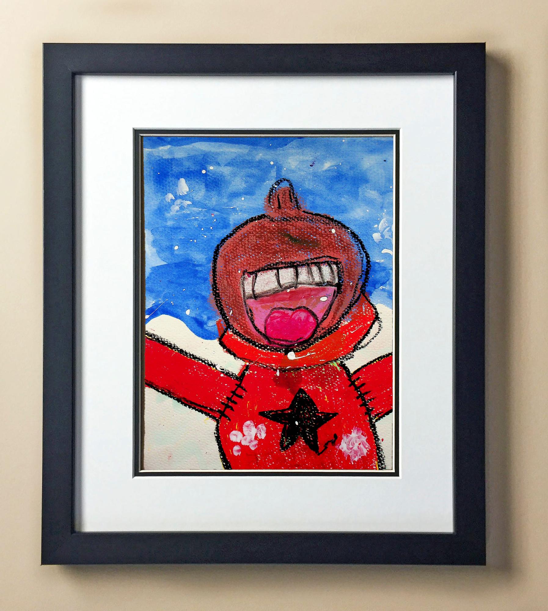 Included with the purchase is the Students Artwork, Frame, double matboard, shatter proof plexiglass, and a ready to hang backerboard with turnbuttons