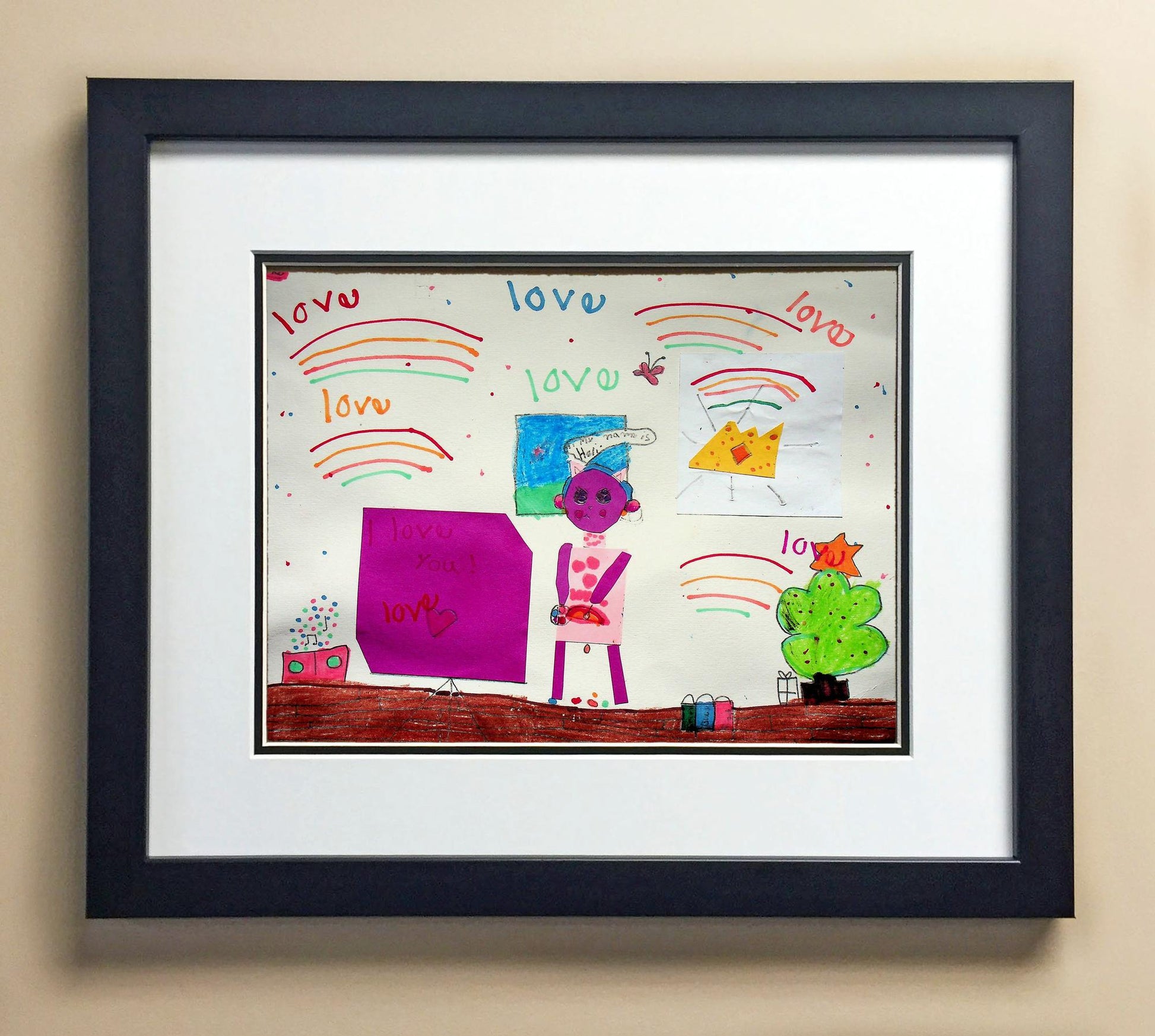 Included with the purchase is the Students Artwork, Frame, double matboard, shatter proof plexiglass, and a ready to hang backerboard with turnbuttons
