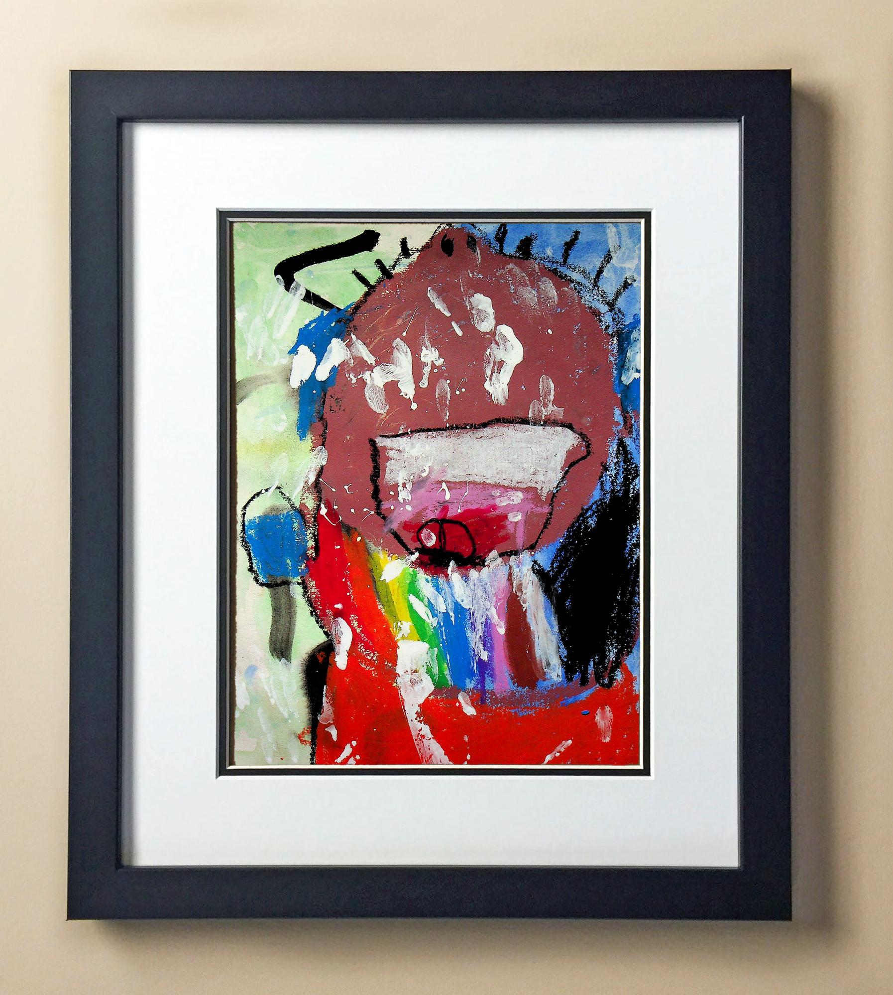Included with the purchase is the Students Artwork, Frame, double matboard, shatter proof plexiglass, and a ready to hang backerboard with turnbuttons