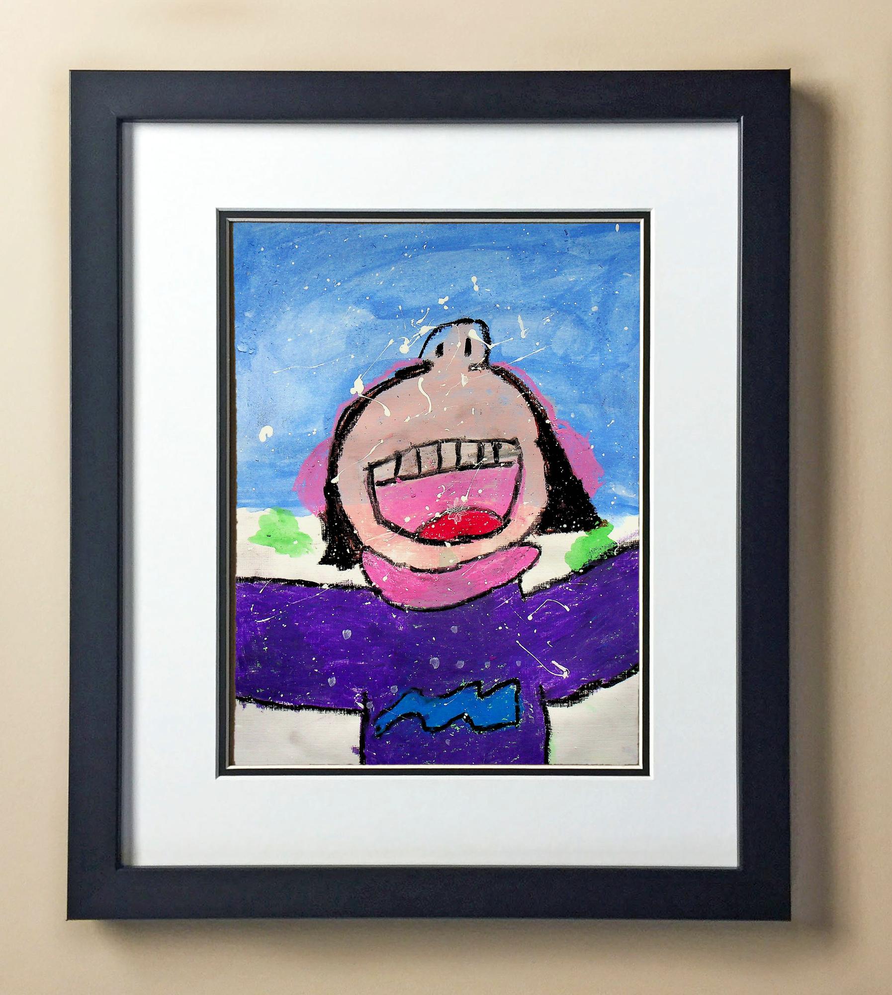 Included with the purchase is the Students Artwork, Frame, double matboard, shatter proof plexiglass, and a ready to hang backerboard with turnbuttons