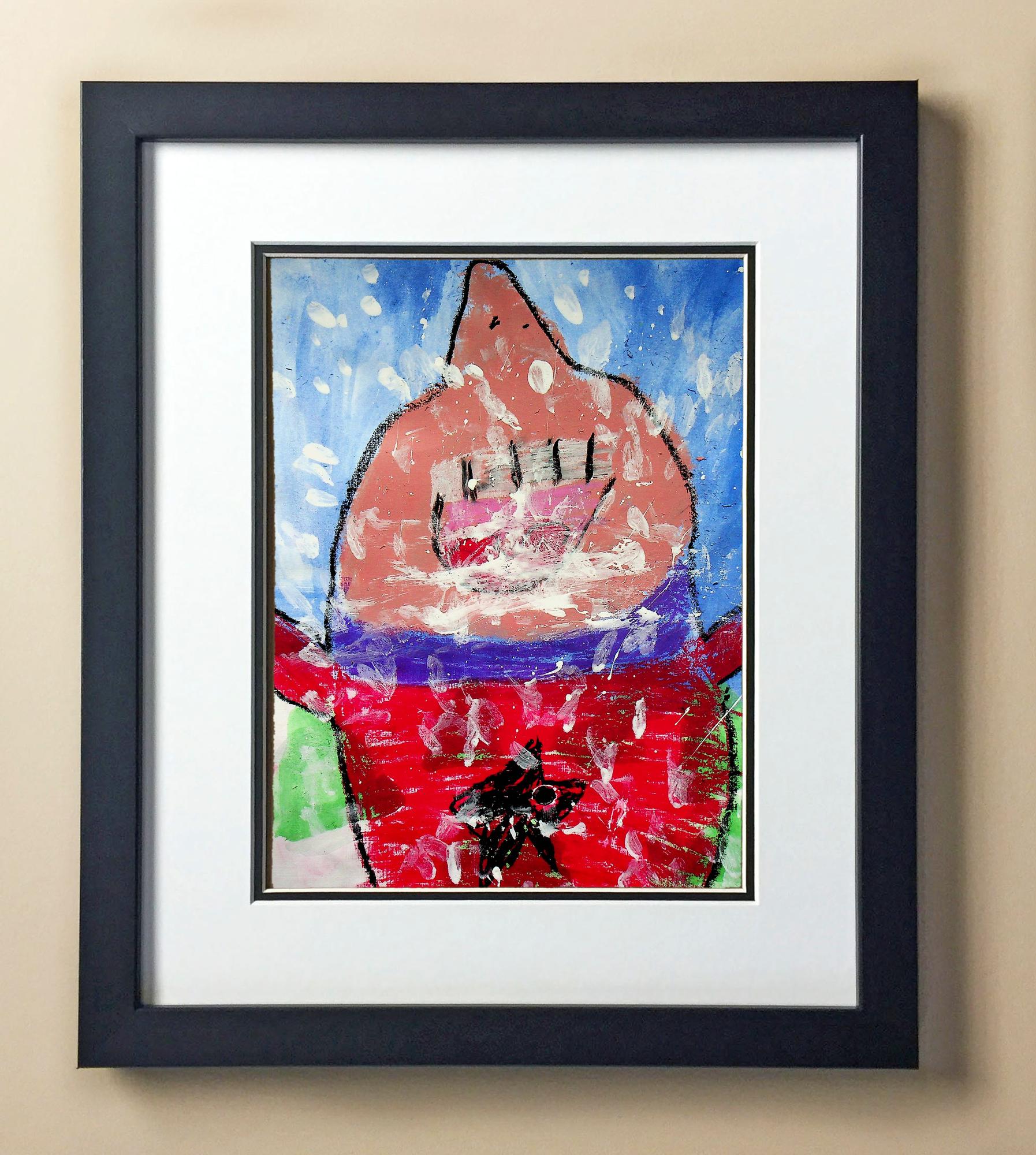 Included with the purchase is the Students Artwork, Frame, double matboard, shatter proof plexiglass, and a ready to hang backerboard with turnbuttons