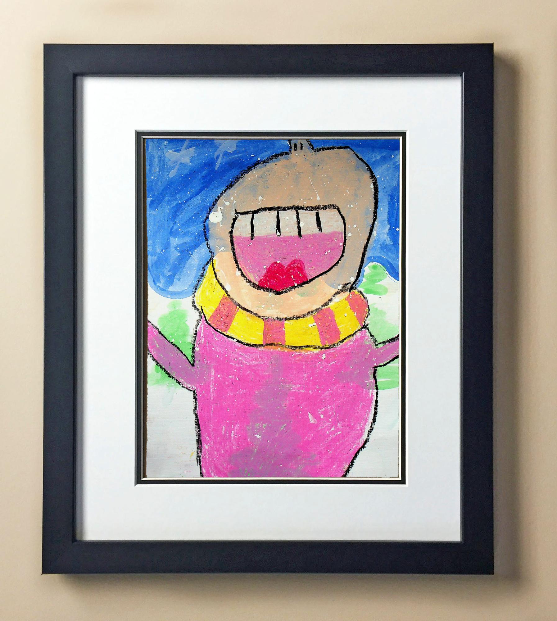 Included with the purchase is the Students Artwork, Frame, double matboard, shatter proof plexiglass, and a ready to hang backerboard with turnbuttons