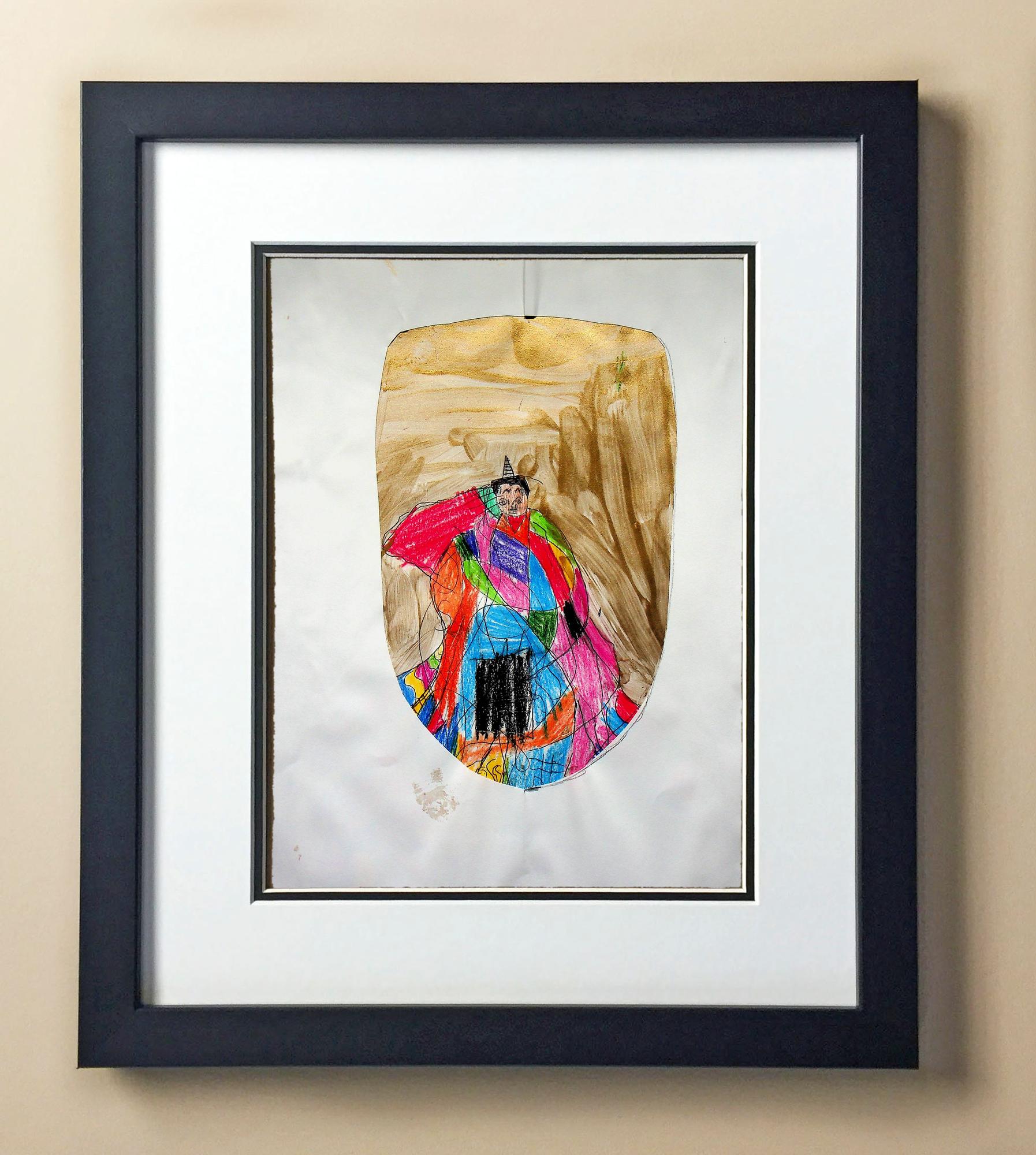 Included with the purchase is the Students Artwork, Frame, double matboard, shatter proof plexiglass, and a ready to hang backerboard with turnbuttons