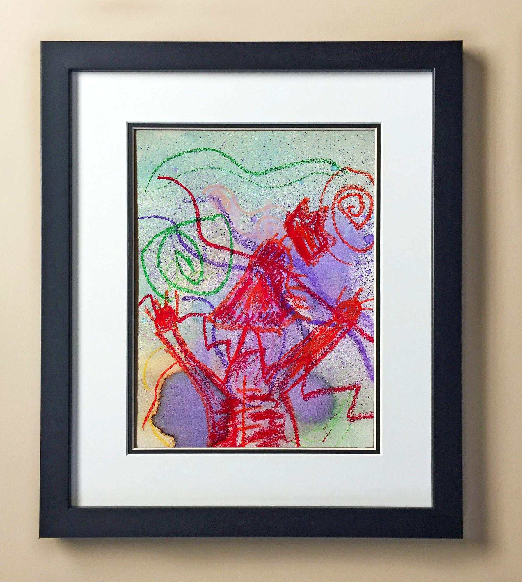 Included with the purchase is the Students Artwork, Frame, double matboard, shatter proof plexiglass, and a ready to hang backerboard with turnbuttons