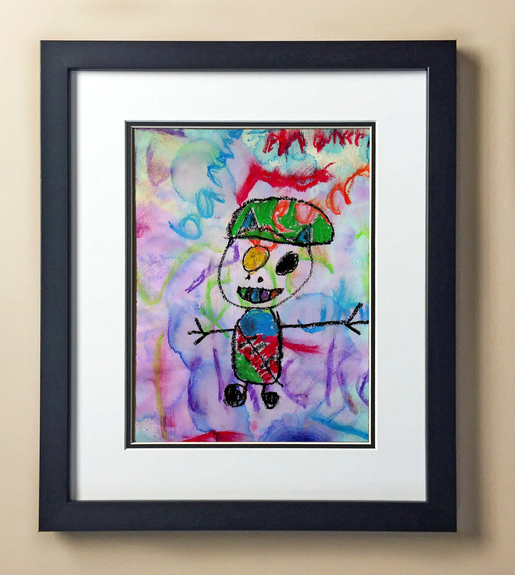 Included with the purchase is the Students Artwork, Frame, double matboard, shatter proof plexiglass, and a ready to hang backerboard with turnbuttons