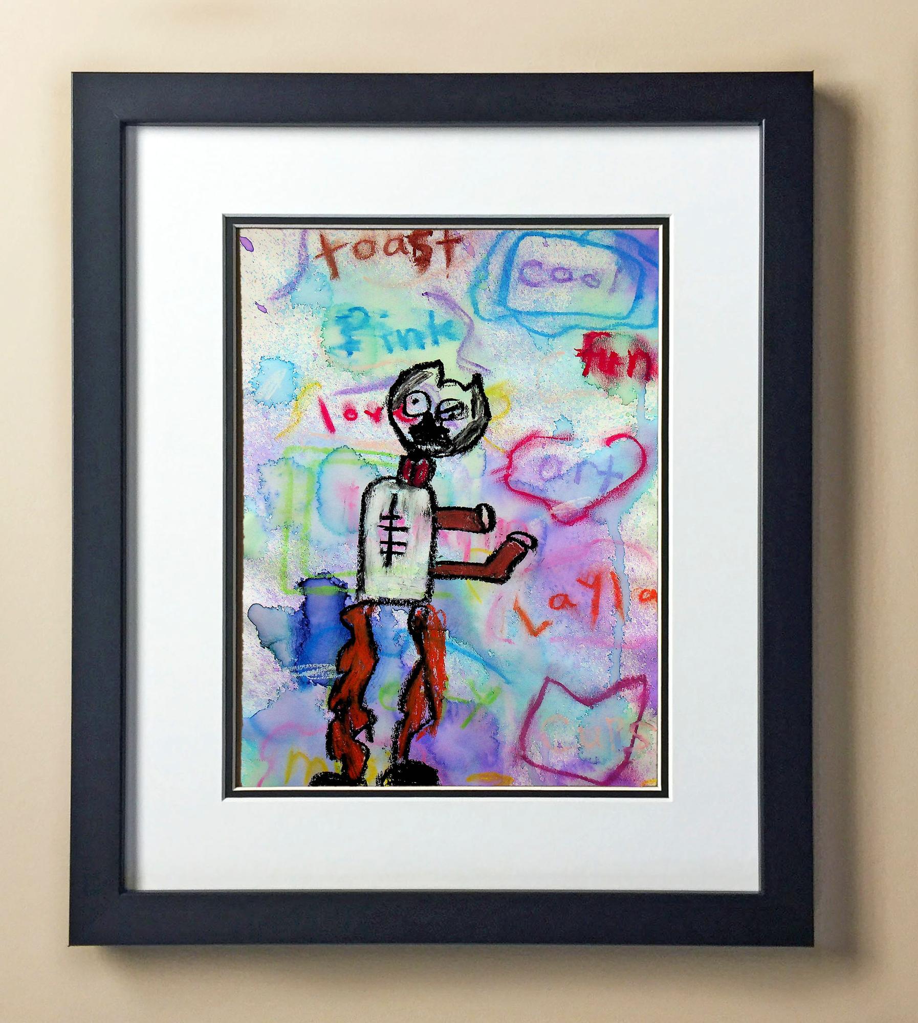 Included with the purchase is the Students Artwork, Frame, double matboard, shatter proof plexiglass, and a ready to hang backerboard with turnbuttons