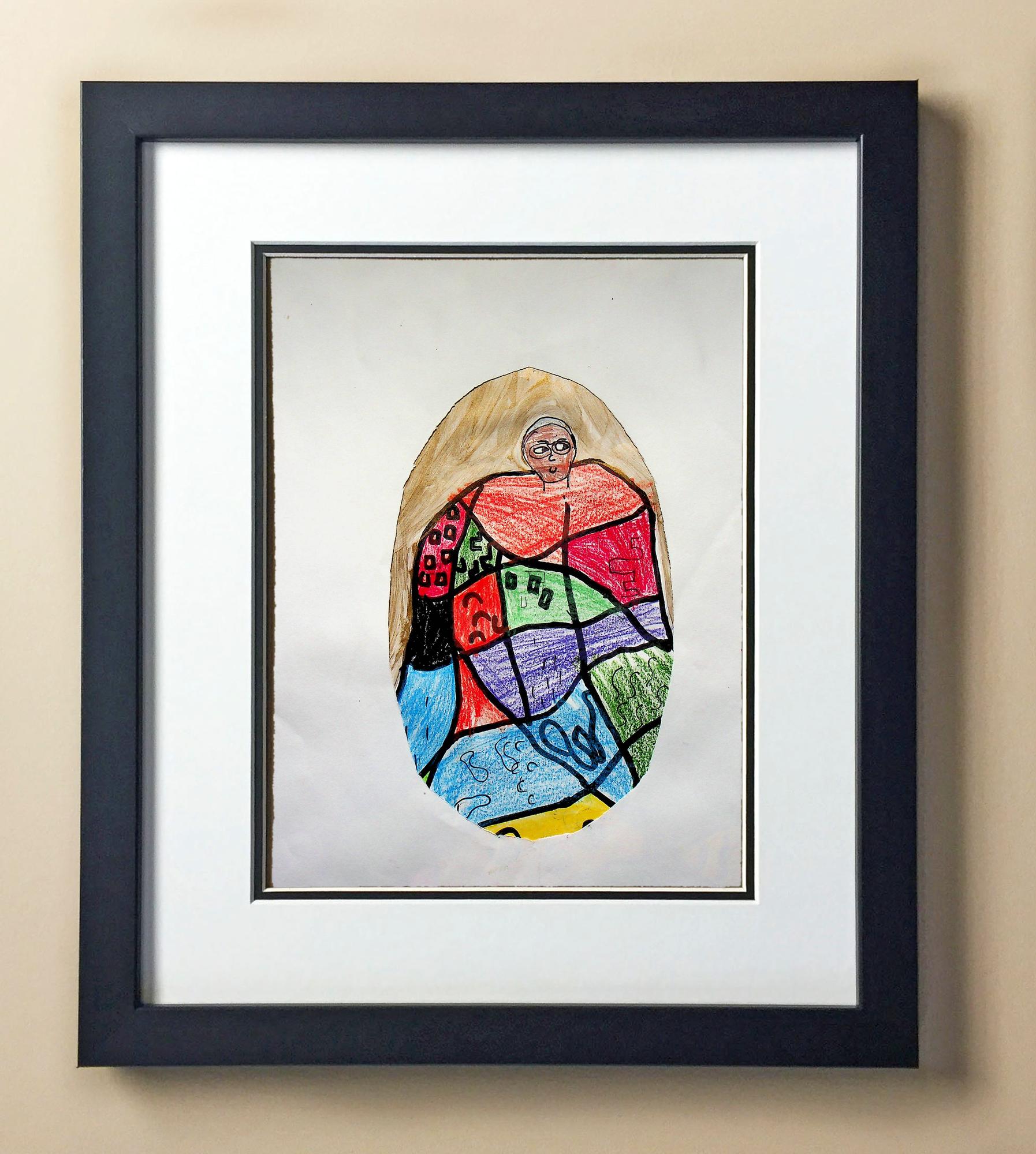 Included with the purchase is the Students Artwork, Frame, double matboard, shatter proof plexiglass, and a ready to hang backerboard with turnbuttons