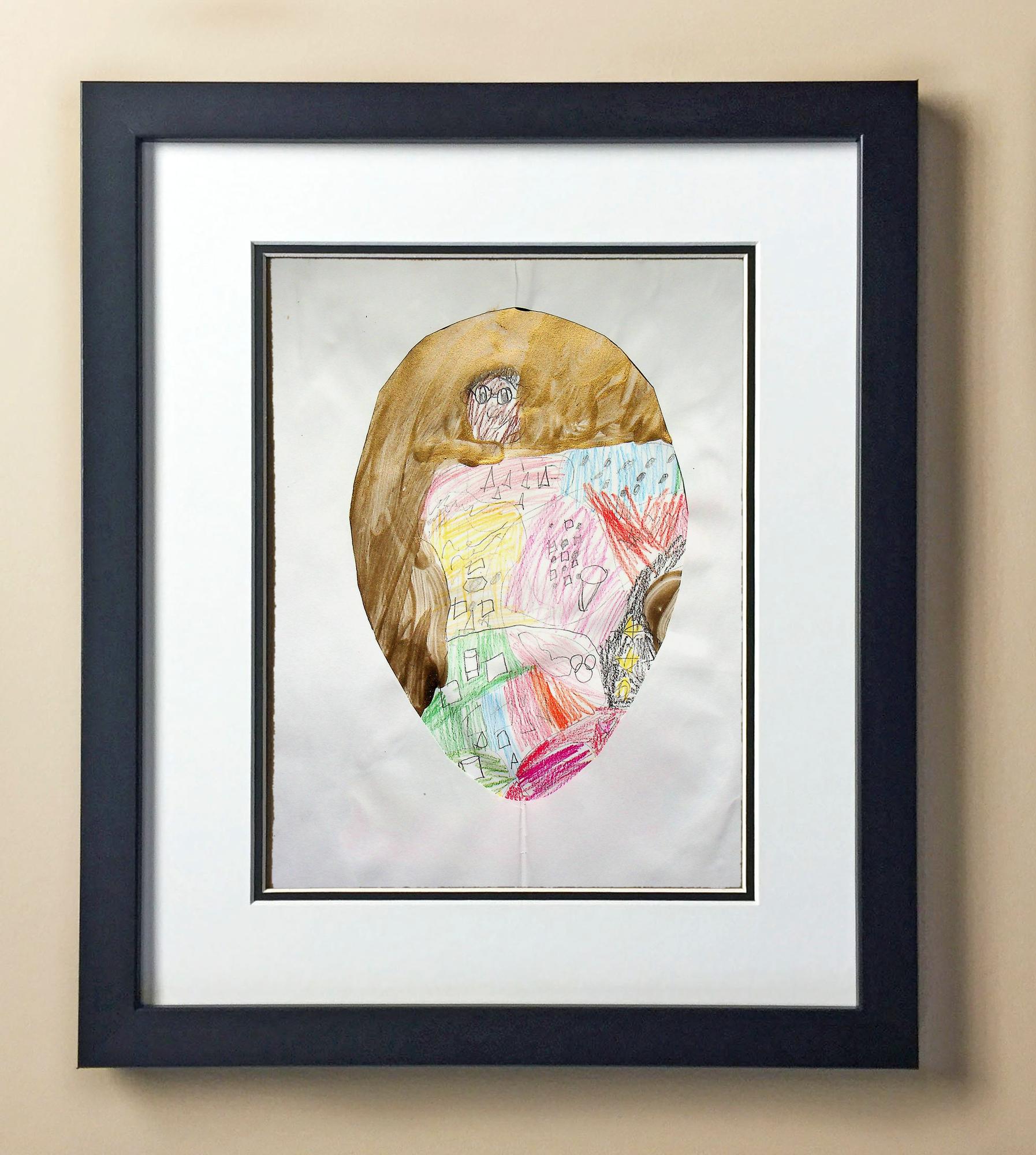 Included with the purchase is the Students Artwork, Frame, double matboard, shatter proof plexiglass, and a ready to hang backerboard with turnbuttons