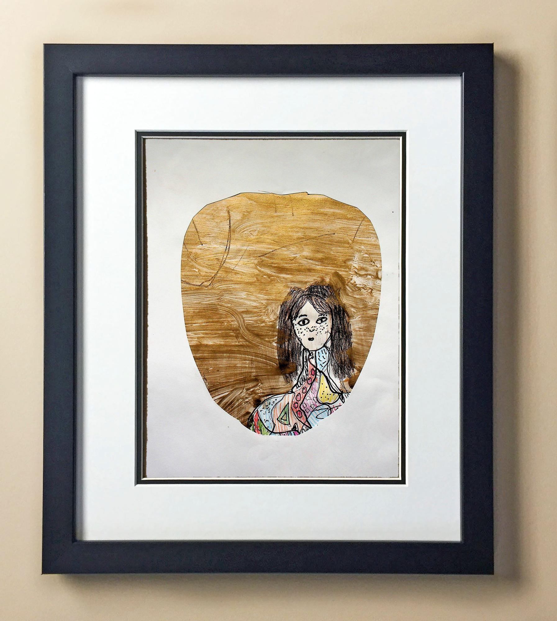 Included with the purchase is the Students Artwork, Frame, double matboard, shatter proof plexiglass, and a ready to hang backerboard with turnbuttons