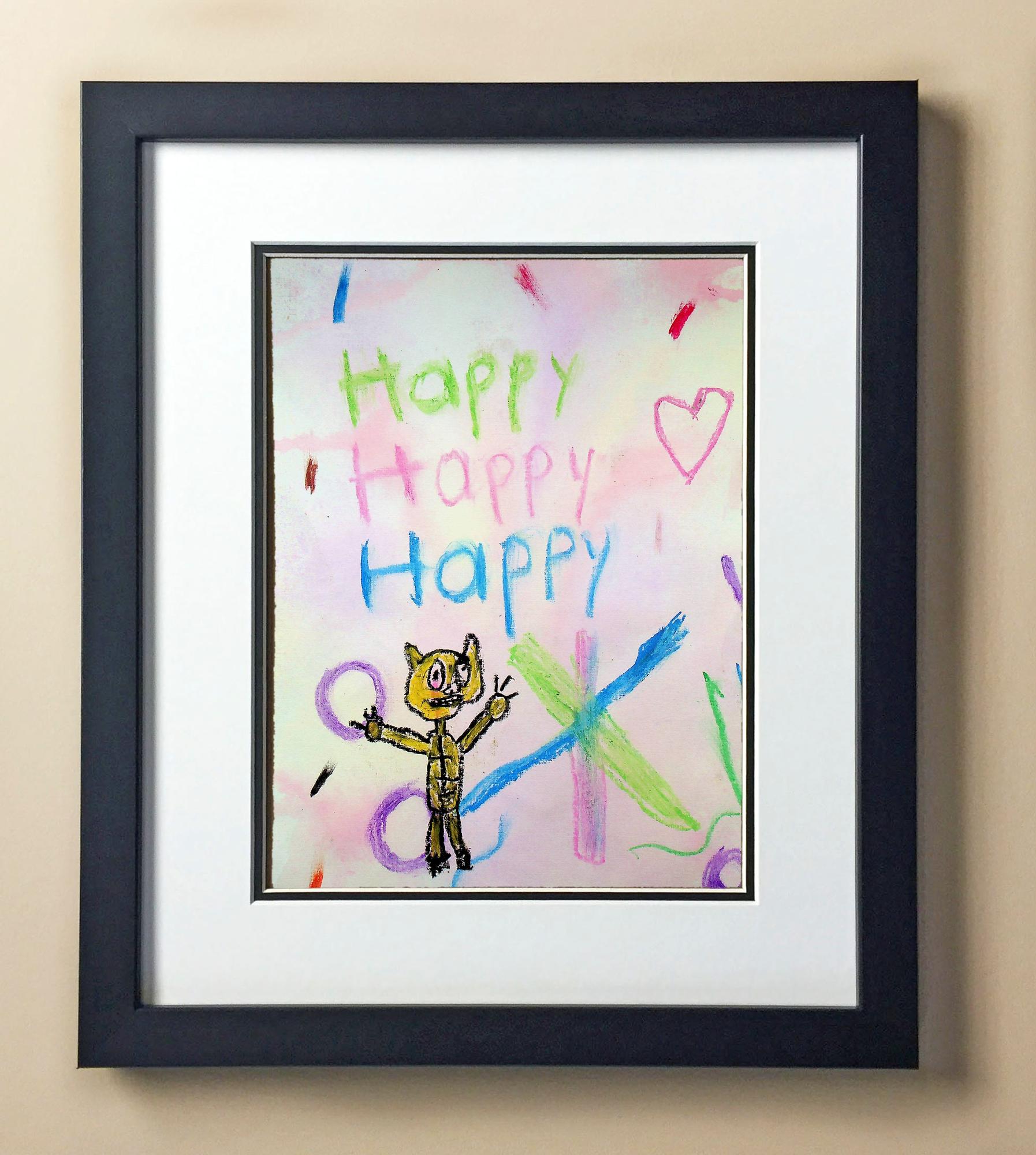 Included with the purchase is the Students Artwork, Frame, double matboard, shatter proof plexiglass, and a ready to hang backerboard with turnbuttons