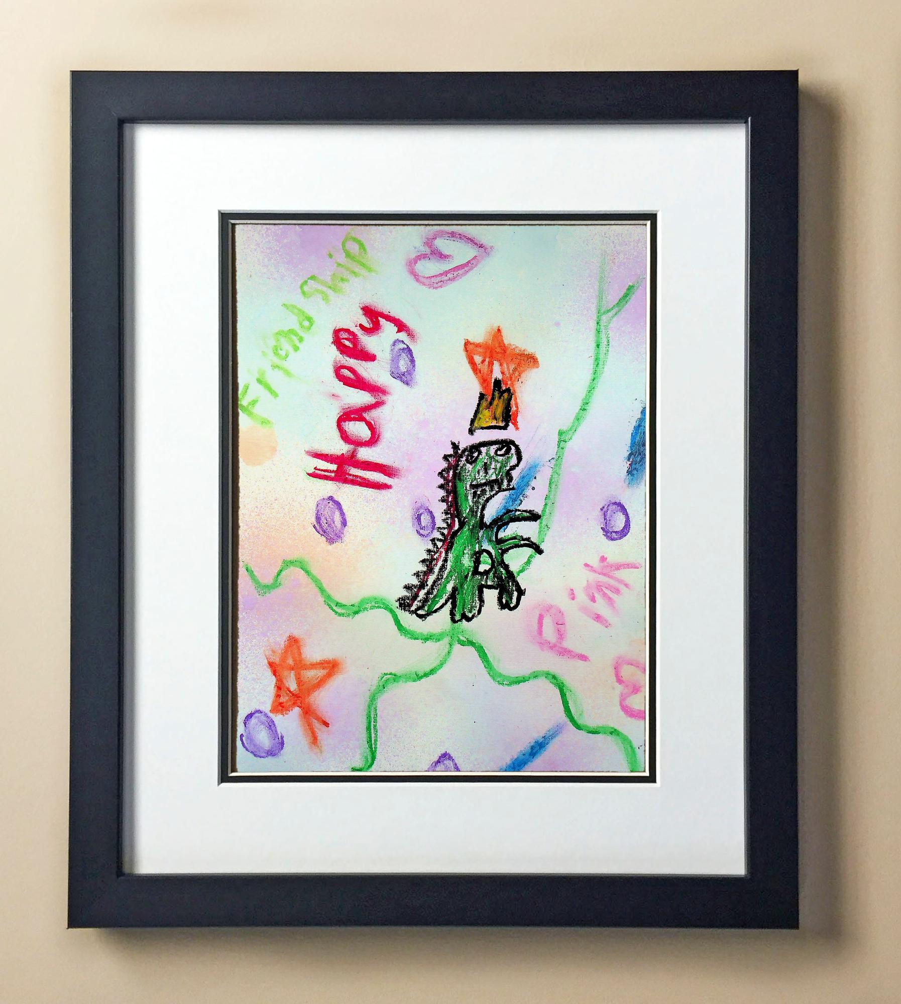 Included with the purchase is the Students Artwork, Frame, double matboard, shatter proof plexiglass, and a ready to hang backerboard with turnbuttons