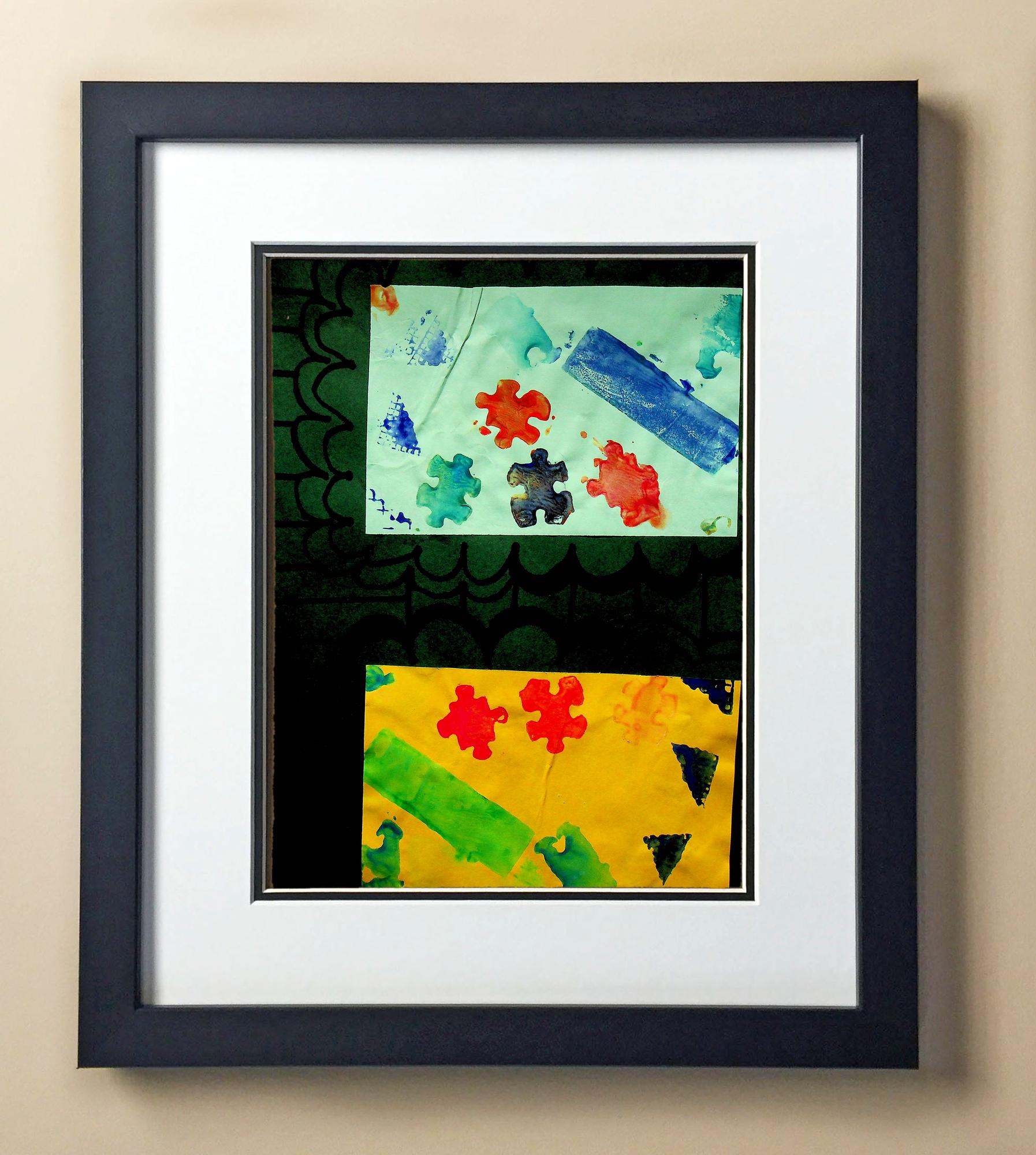 Included with the purchase is the Students Artwork, Frame, double matboard, shatter proof plexiglass, and a ready to hang backerboard with turnbuttons
