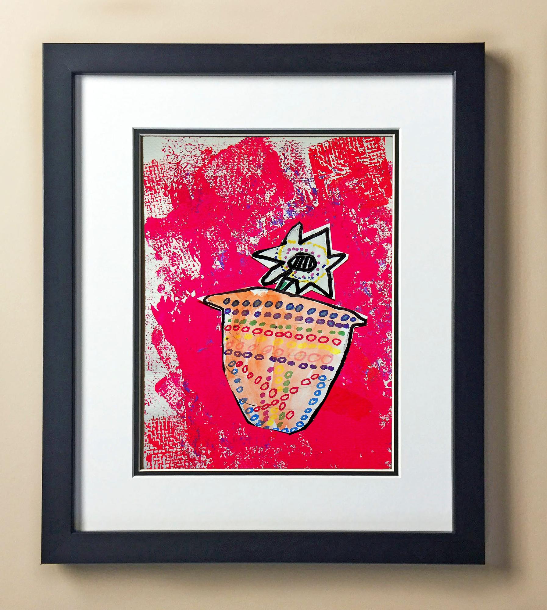 Included with the purchase is the Students Artwork, Frame, double matboard, shatter proof plexiglass, and a ready to hang backerboard with turnbuttons