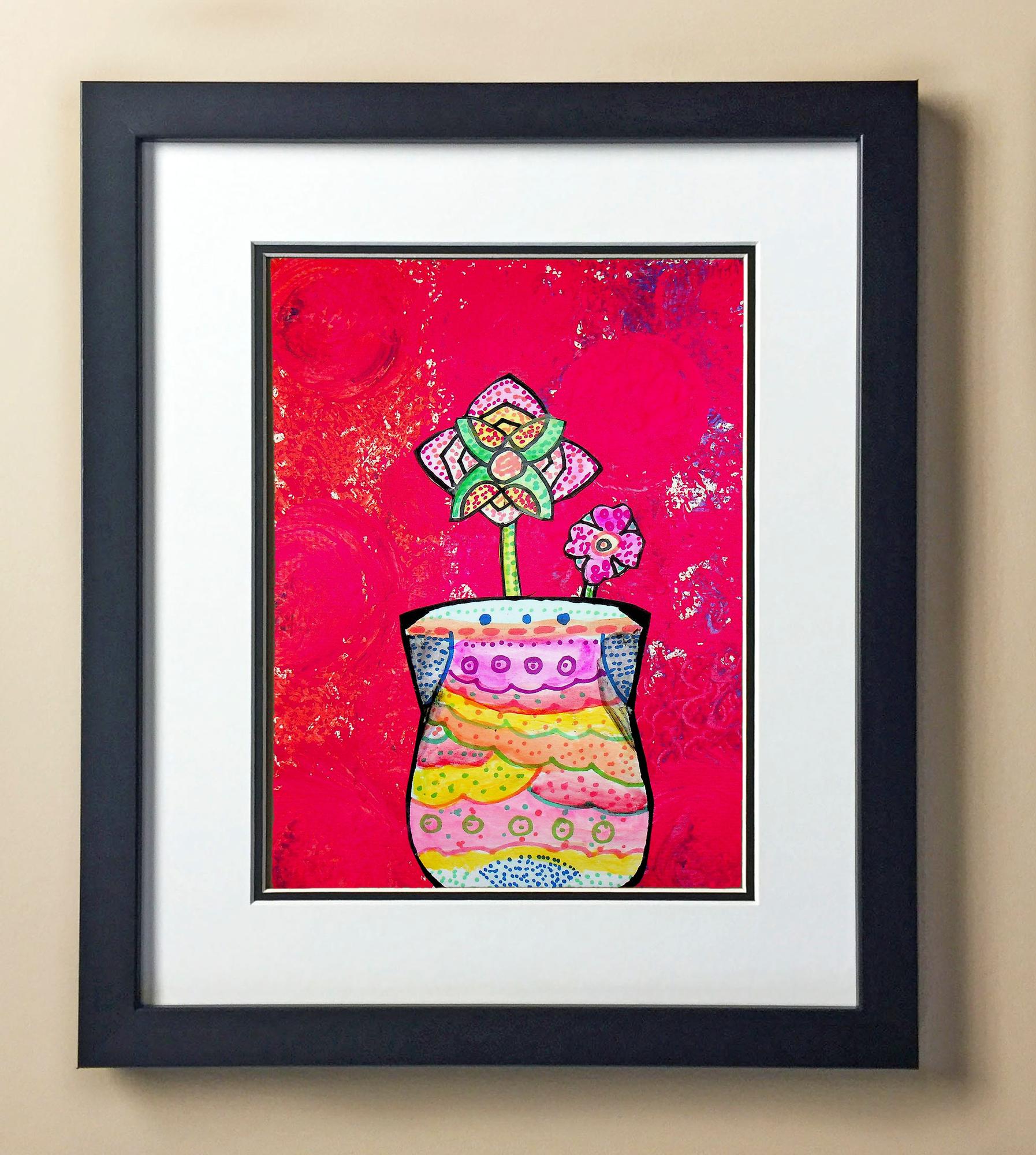 Included with the purchase is the Students Artwork, Frame, double matboard, shatter proof plexiglass, and a ready to hang backerboard with turnbuttons