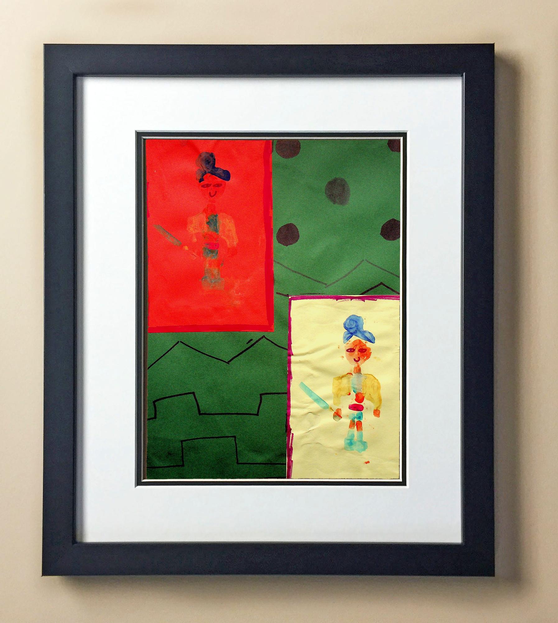 Included with the purchase is the Students Artwork, Frame, double matboard, shatter proof plexiglass, and a ready to hang backerboard with turnbuttons