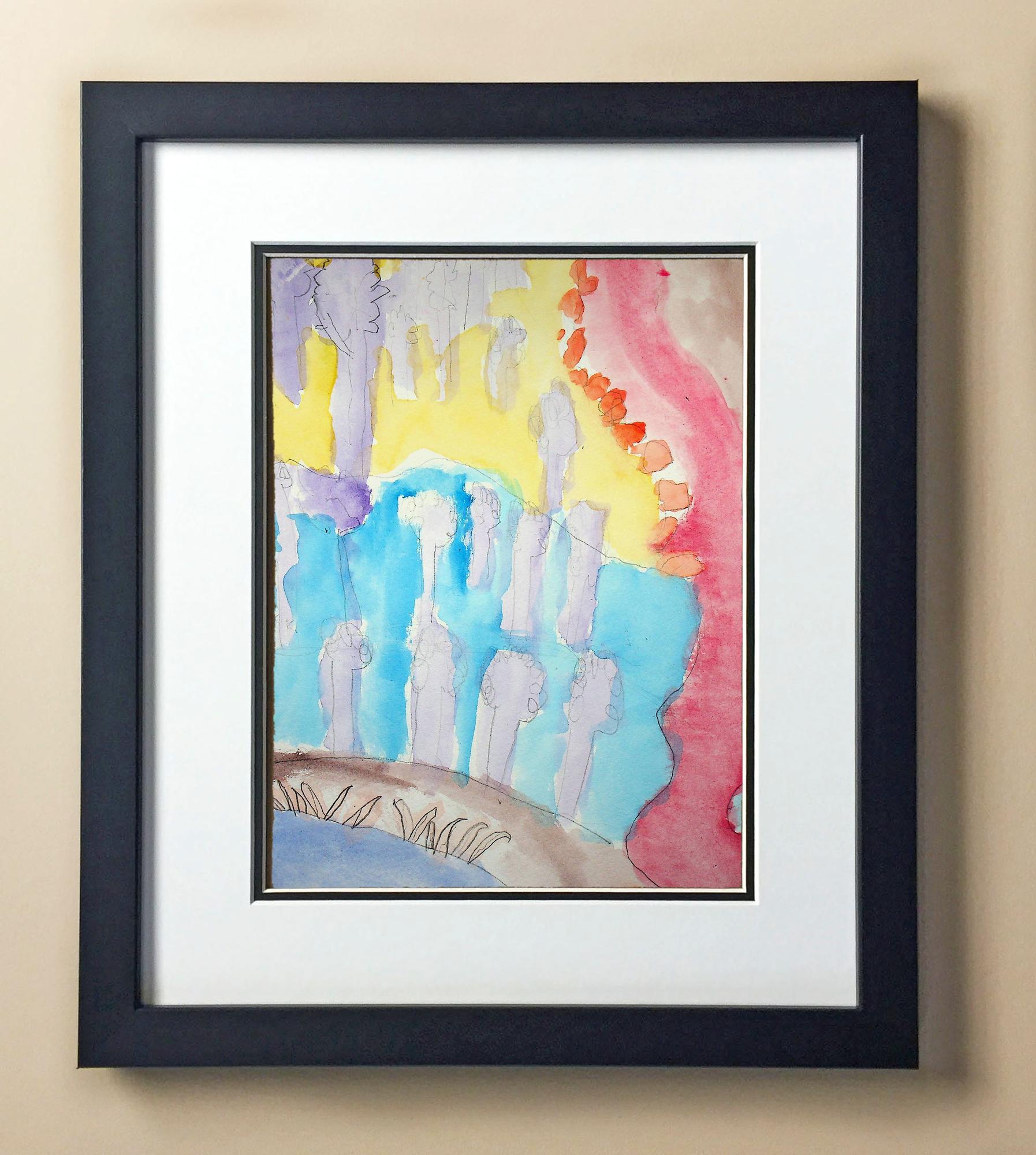 Included with the purchase is the Students Artwork, Frame, double matboard, shatter proof plexiglass, and a ready to hang backerboard with turnbuttons