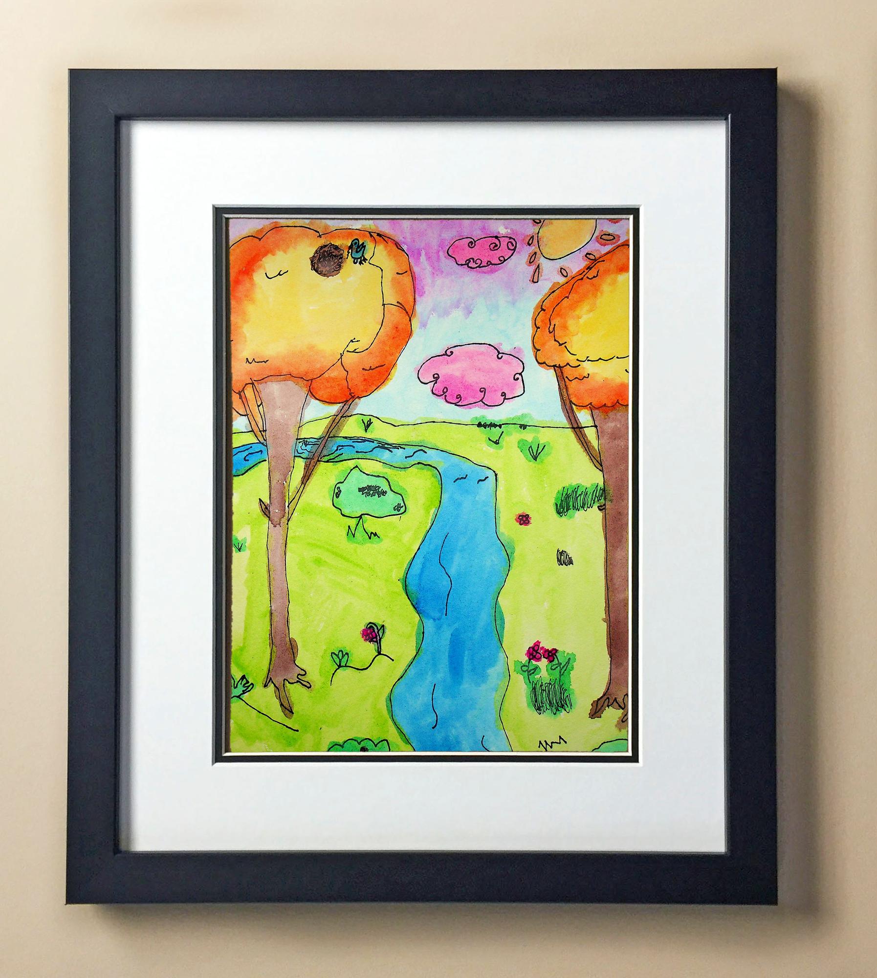 Included with the purchase is the Students Artwork, Frame, double matboard, shatter proof plexiglass, and a ready to hang backerboard with turnbuttons