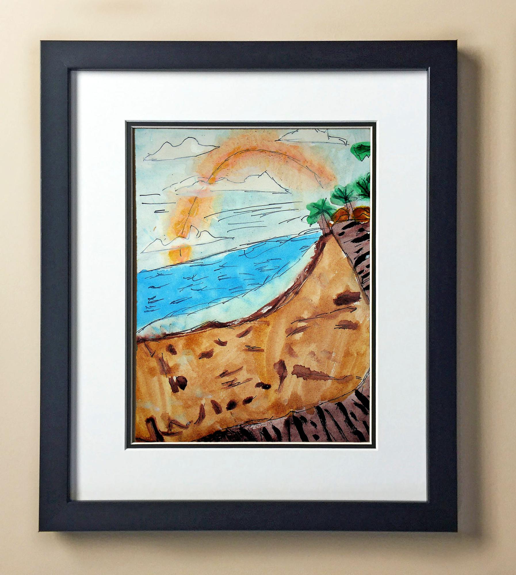 Included with the purchase is the Students Artwork, Frame, double matboard, shatter proof plexiglass, and a ready to hang backerboard with turnbuttons