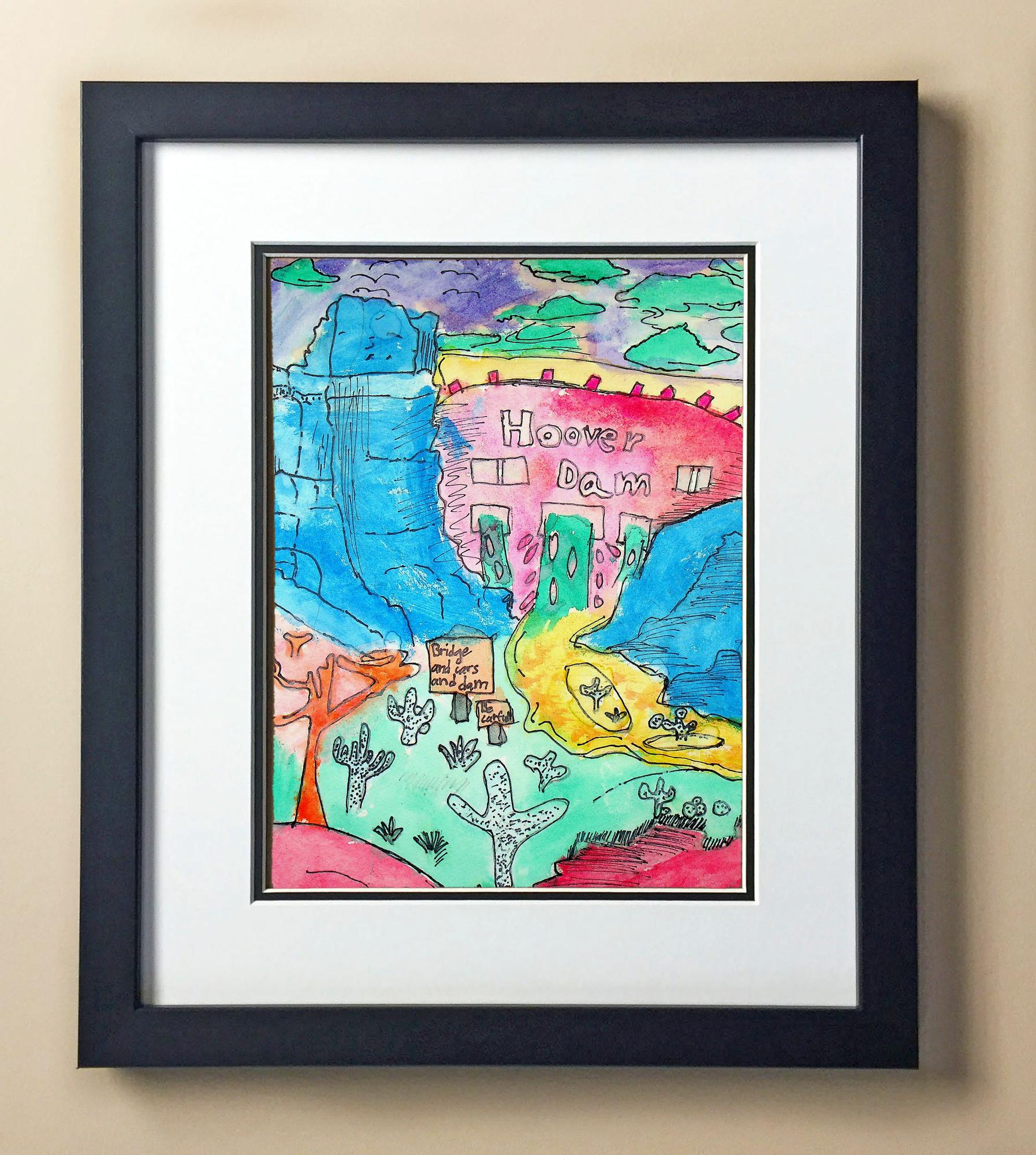 Included with the purchase is the Students Artwork, Frame, double matboard, shatter proof plexiglass, and a ready to hang backerboard with turnbuttons