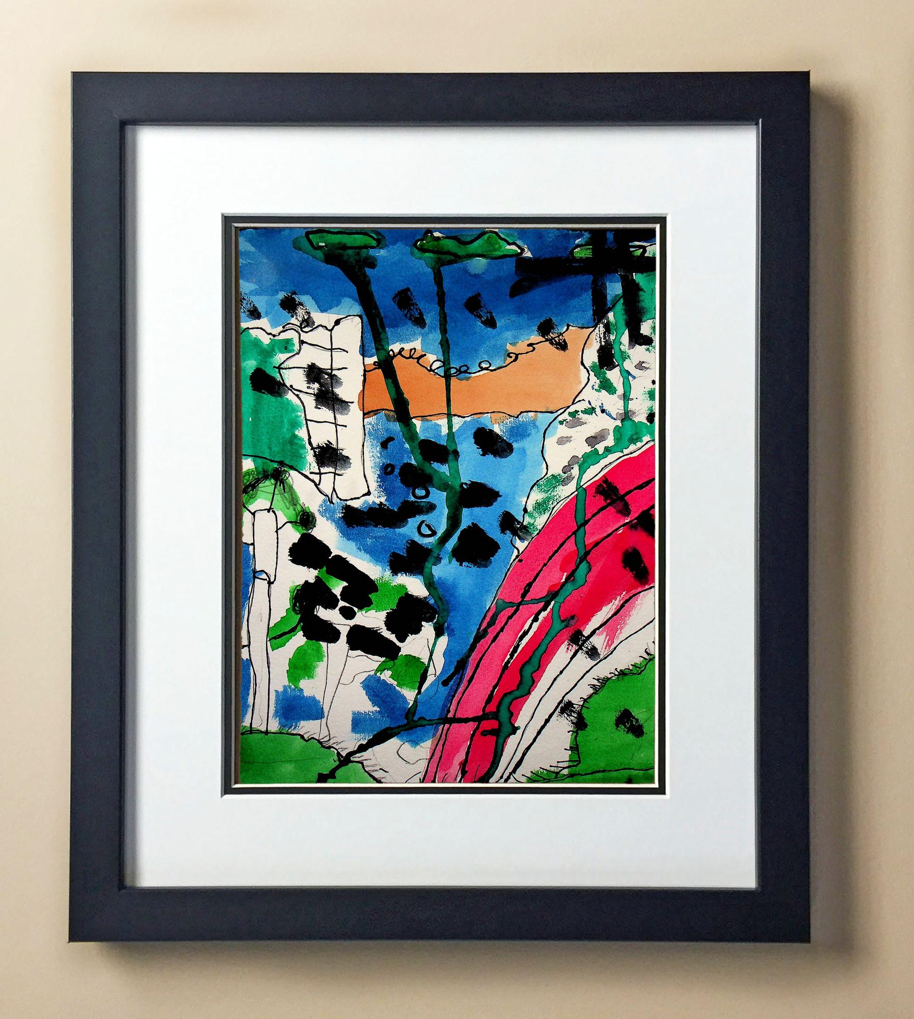 Included with the purchase is the Students Artwork, Frame, double matboard, shatter proof plexiglass, and a ready to hang backerboard with turnbuttons