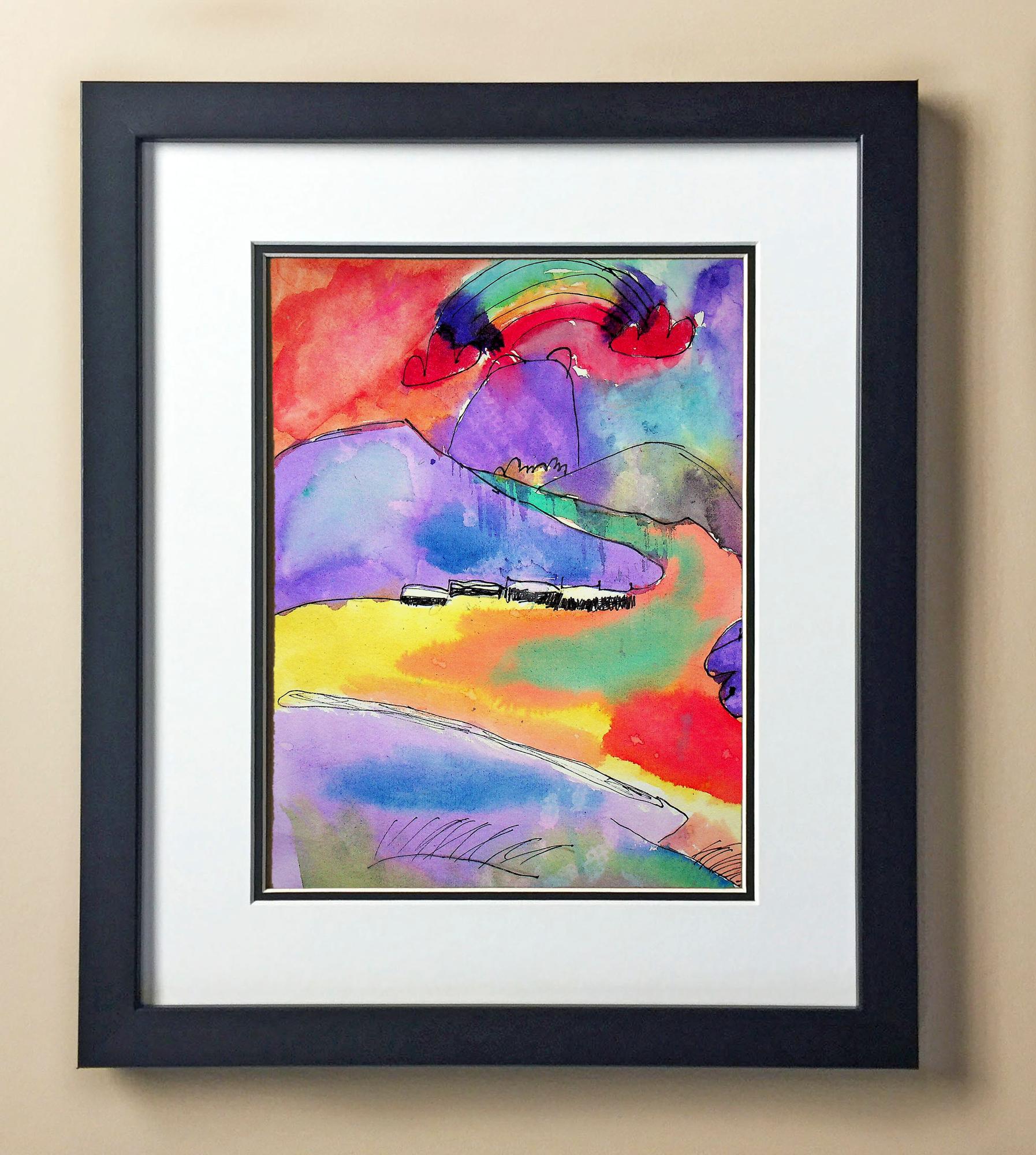 Included with the purchase is the Students Artwork, Frame, double matboard, shatter proof plexiglass, and a ready to hang backerboard with turnbuttons