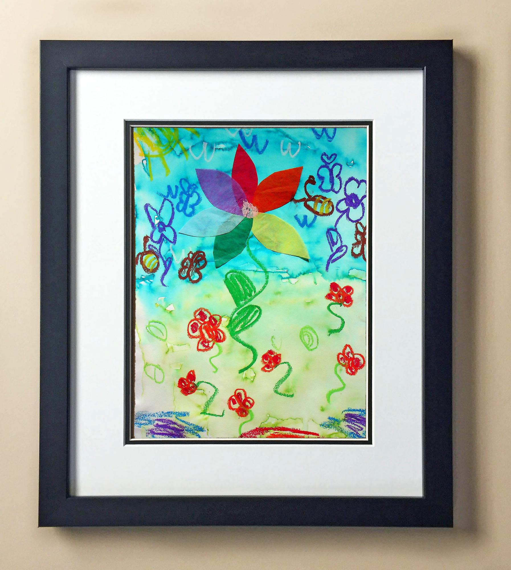 Included with the purchase is the Students Artwork, Frame, double matboard, shatter proof plexiglass, and a ready to hang backerboard with turnbuttons