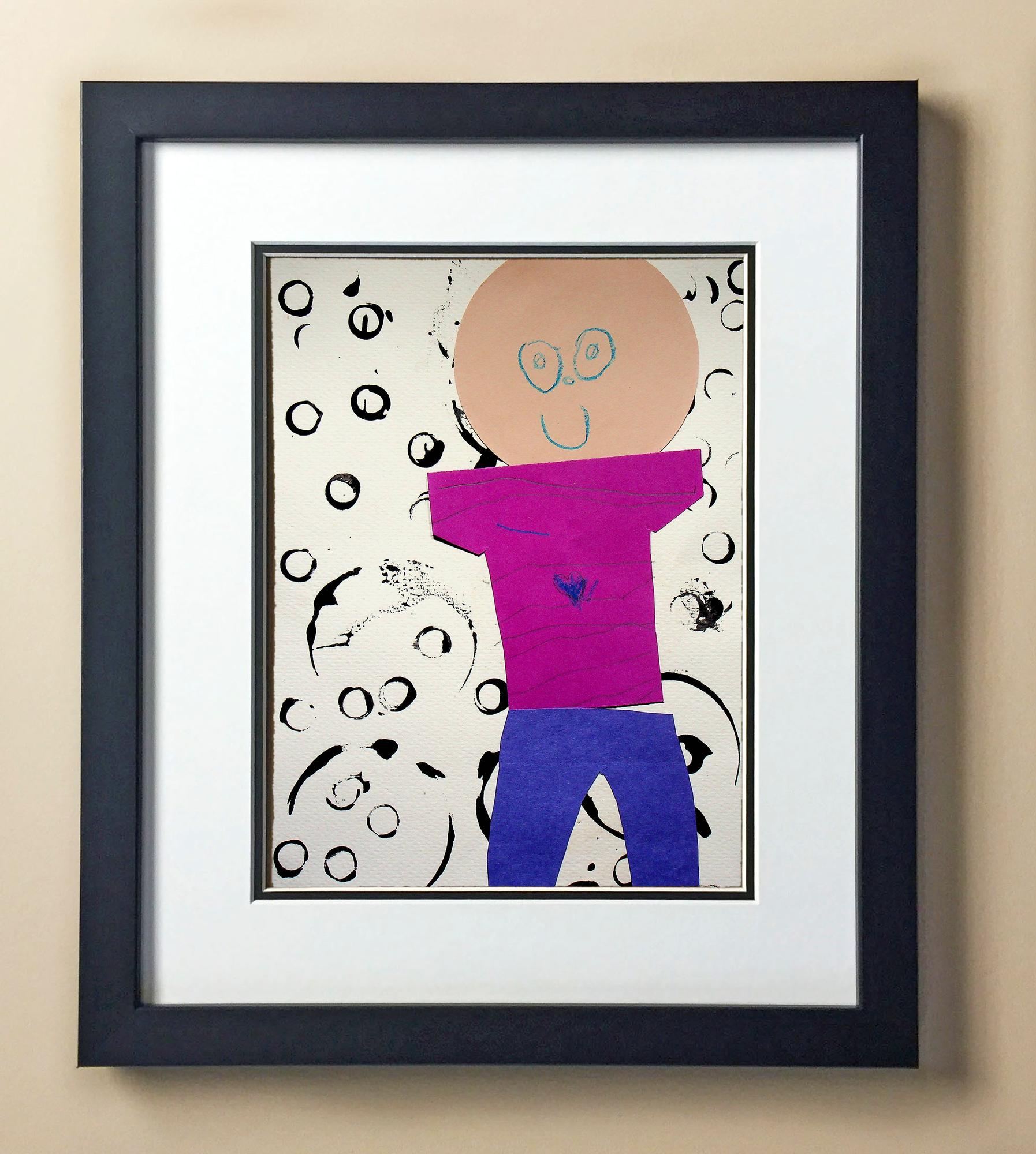 Included with the purchase is the Students Artwork, Frame, double matboard, shatter proof plexiglass, and a ready to hang backerboard with turnbuttons