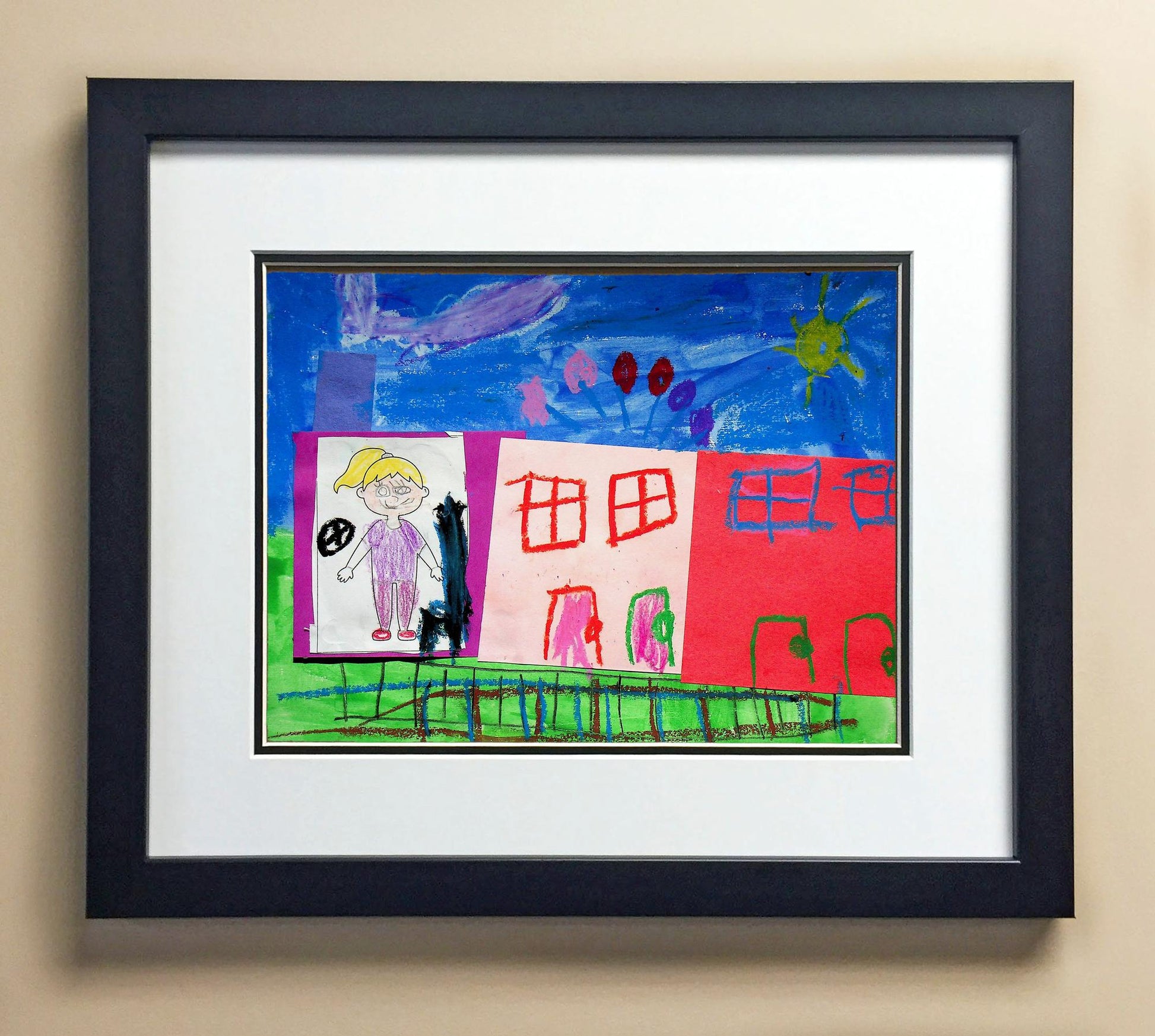 Included with the purchase is the Students Artwork, Frame, double matboard, shatter proof plexiglass, and a ready to hang backerboard with turnbuttons