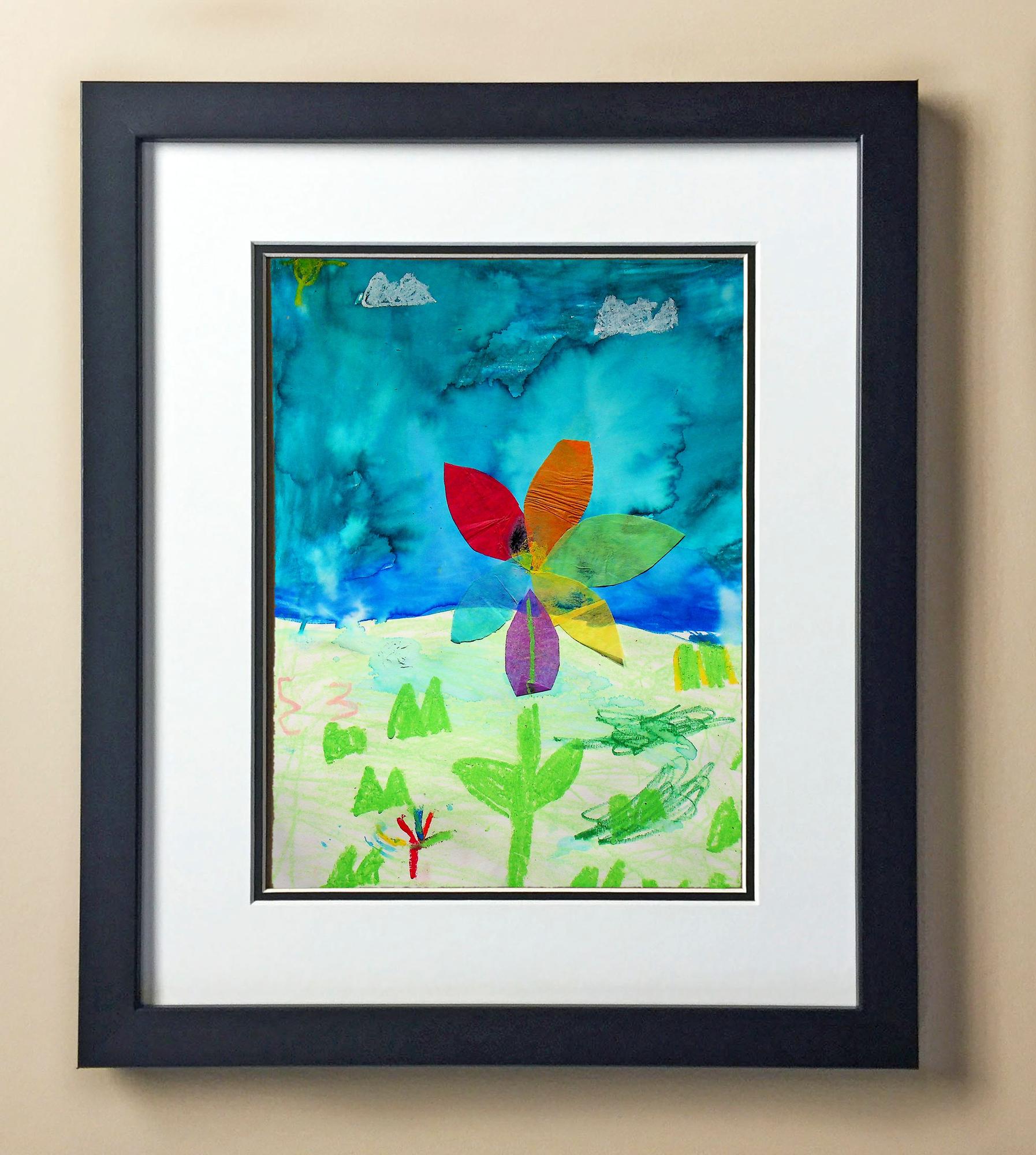 Included with the purchase is the Students Artwork, Frame, double matboard, shatter proof plexiglass, and a ready to hang backerboard with turnbuttons